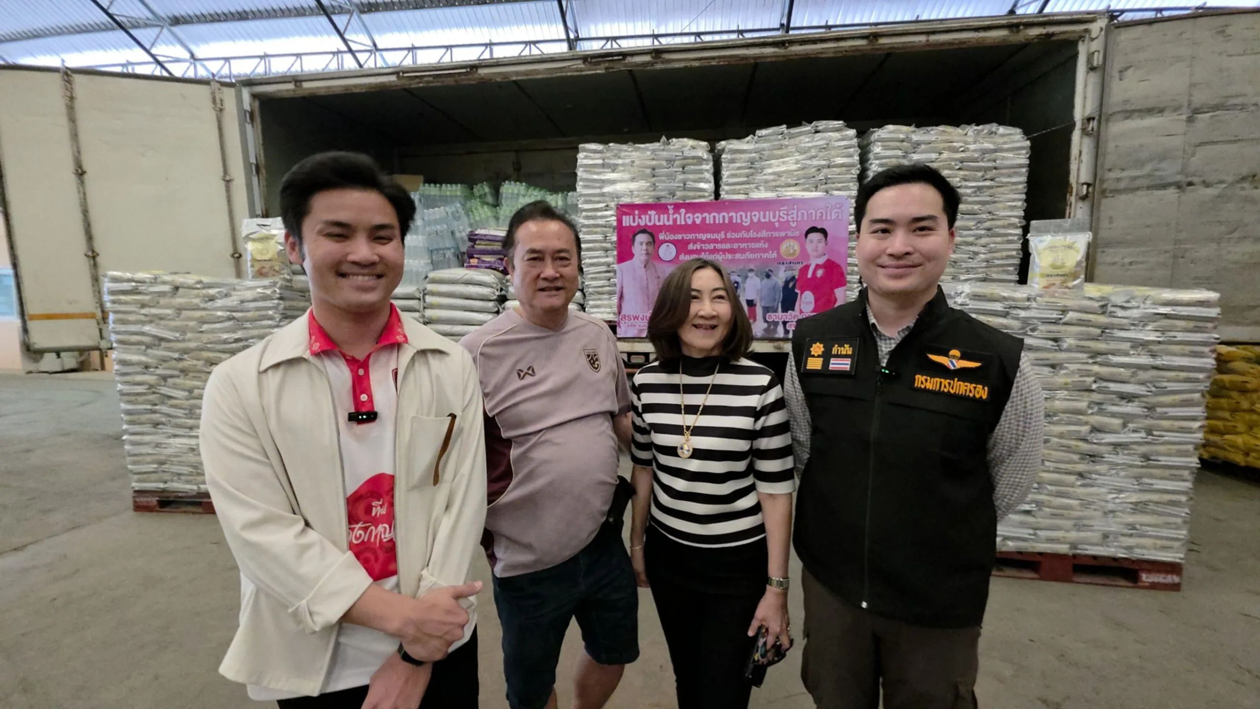 กาญจนบุรี/ส่งข้าวสาร 10 ตันพร้อมสิ่งของอุปโภคบริโภคสู่ภาคใต้ ธารน้ำใจช่วยเหลือผู้ประสบอุทกภัย