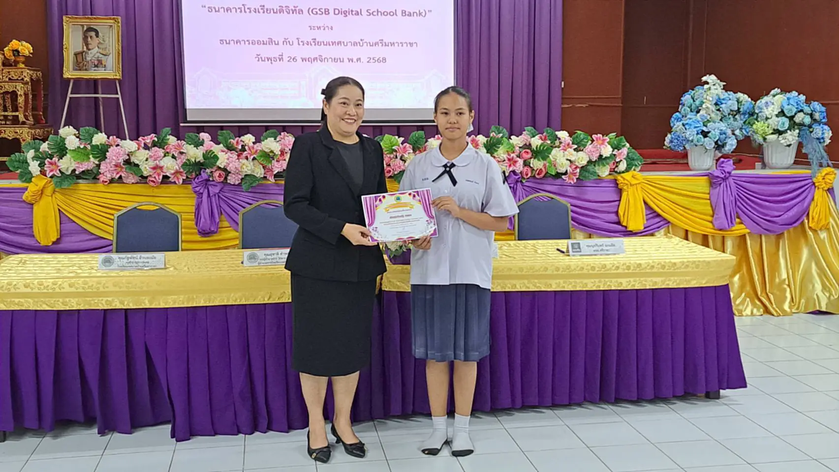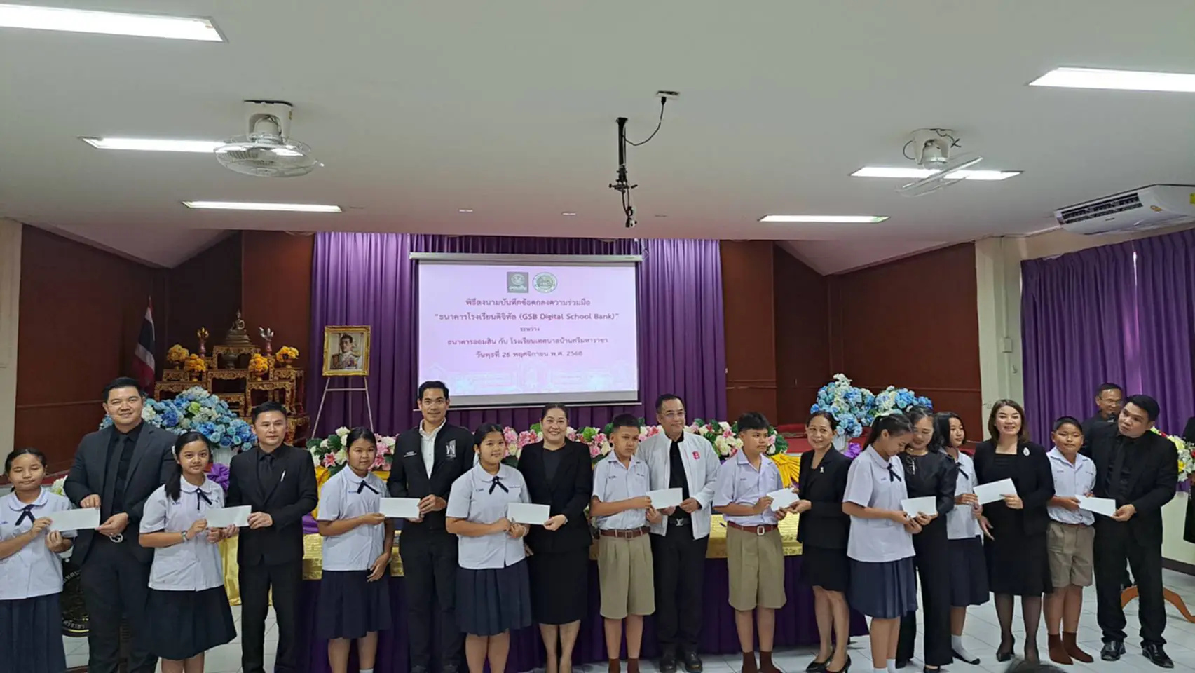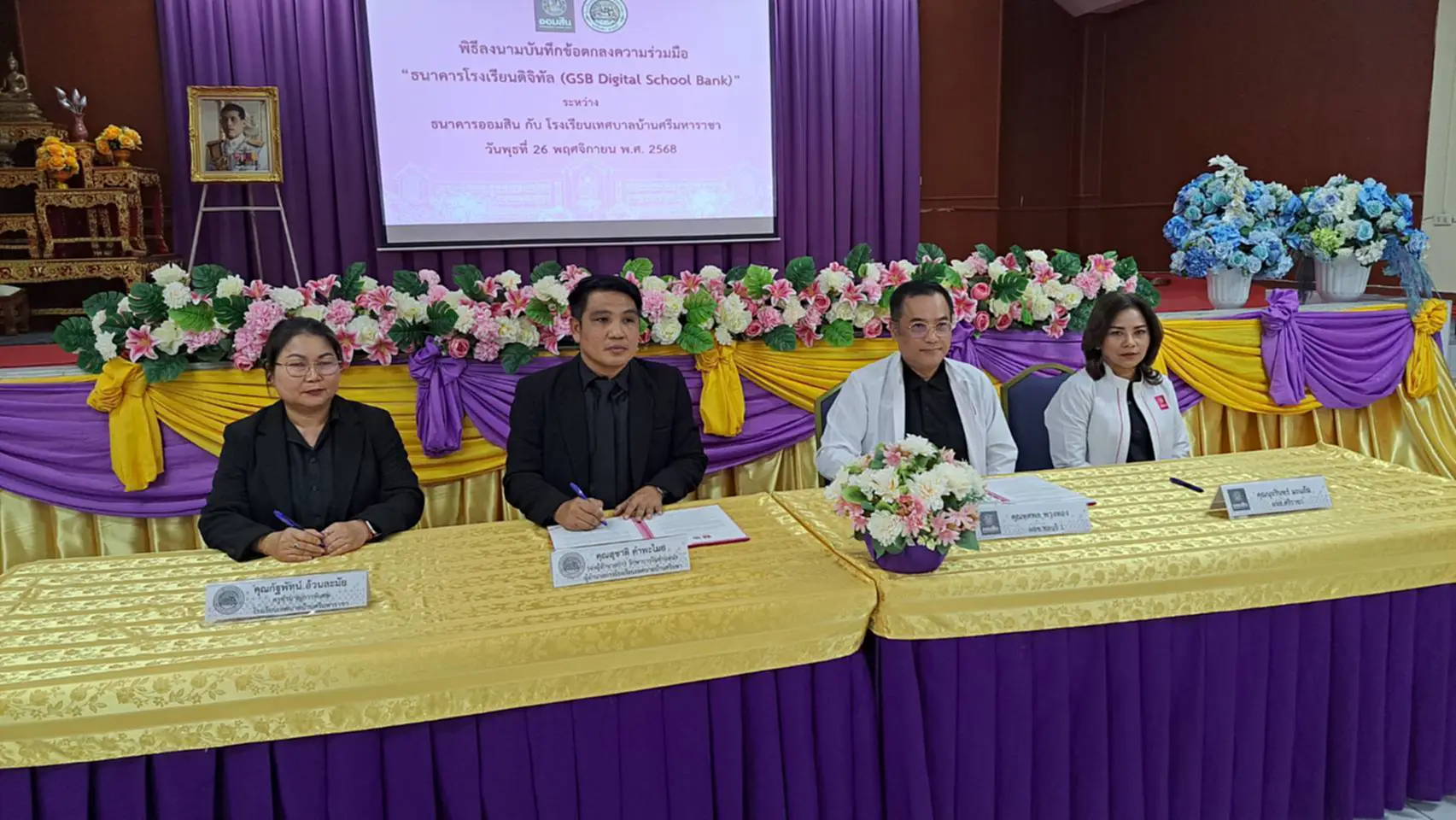 โรงเรียนเทศบาลบ้านศรีมหาราชา ร่วมกับ ธนาคาออมสิน พิธีลงนามบันทึกข้อตกลงความร่วมมือ “ธนาคารโรงเรียนดิจิทัล (GSB Digital School Bank) และ เปิดธนาคารโรงเรียนอย่างเป็นทางการ