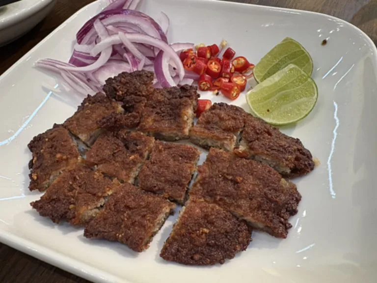 หมูสับปลาเค็มทอด ทอดจนผิวนอกกรอบ ส่วนด้านในยังนุ่ม หอมปลาเค็ม