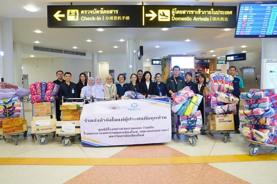 ในภารกิจ “รวมใจเชียงใหม่ช่วยหาดใหญ่ สู้ภัยน้ำท่วม” เมื่อวันที่ 26 พฤศจิกายน 2568 ณ บริเวณโถงผู้โดยสารชั้น 1 อาคารผู้โดยสารภายในประเทศ ท่าอากาศยานนานาชาติเชียงใหม่
