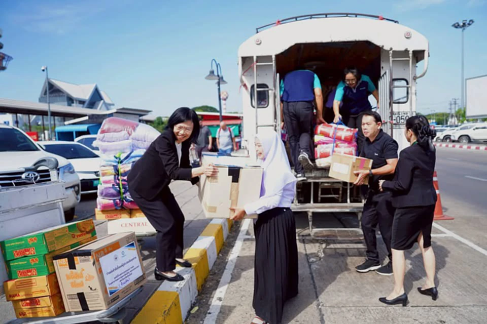 ร่วมส่งมอบของอุปโภคบริโภค ผ้าห่ม 100 ผืน ผ้าเช็ดตัว รองเท้าแตะ และอาหารพร้อมทาน ซึ่งเป็นการส่งไปในครั้งที่ 2 ให้แก่ ผู้ประสบอุทกภัยในพื้นที่ภาคใต้ อำเภอหาดใหญ่ จังหวัดสงขลา