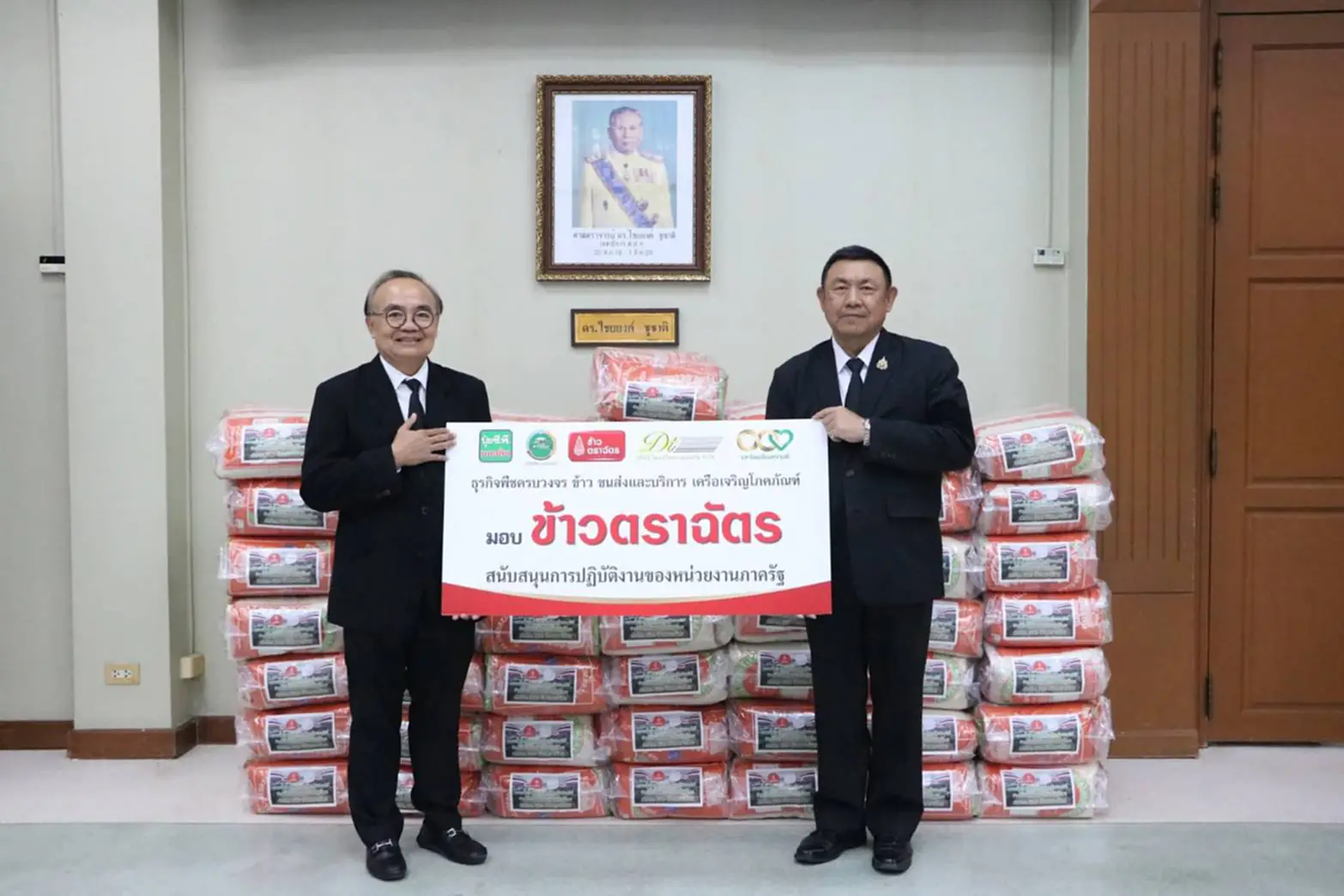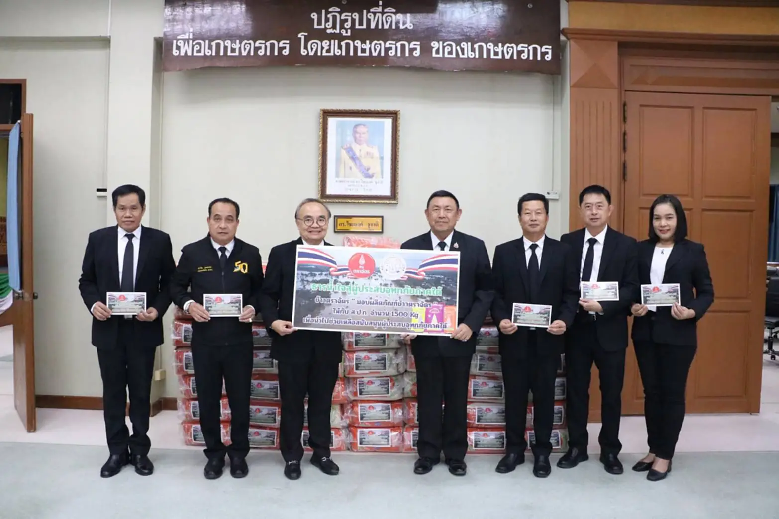วันที่ 26 พฤศจิกายน 2568 นายเศรษฐเกียรติ กระจ่างวงษ์ เลขาธิการสำนักงานการปฏิรูปที่ดินเพื่อเกษตรกรรม (ส.ป.ก.) พร้อมด้วย นายสุรชัย ยุทธชนะ, นายวัฒนา มังธิสาร, นายปรีชา ลิ้มถวิล รองเลขาธิการ ส.ป.ก., นายกฤษณะ ดีปาละ หัวหน้าผู้ตรวจราชการกรม, นายกฤตวิทย์ พิมพ์ทองงาม, นางสาวพจนันท์ กองมาก ผู้ตรวจราชการกรม, ผู้อำนวยการสำนัก/กอง/ศูนย์ และเจ้าหน้าที่ที่เกี่ยวข้อง ร่วมจับมือกับ นายชนะ เหล่าวีระกุล ประธานคณะผู้บริหาร ธุรกิจขนส่ง เครือเจริญโภคภัณฑ์ (ข้าวตราฉัตร) ร่วมบริจาคข้าวสารช่วยเหลือผู้ประสบอุทกภัยภาคใต้ จำนวน 1.5 ตัน เพื่อช่วยบรรเทาความเดือดร้อนของผู้ประสบอุทกภัยภาคใต้ ณ ห้องประชุมไชยยงค์ ชูชาติ ส.ป.ก. ถนนราชดำเนินนอก เขตพระนคร กรุงเทพฯ