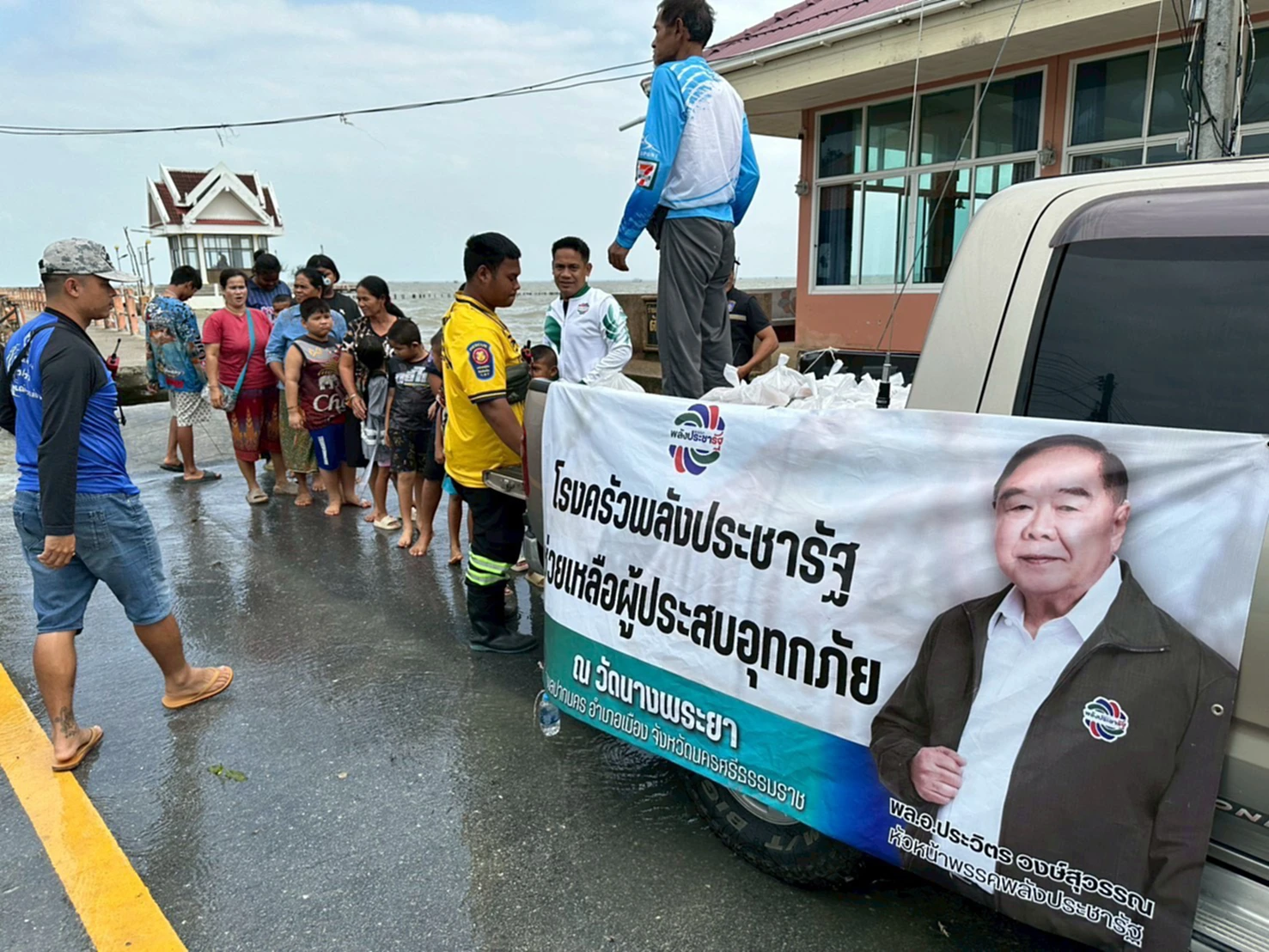 วันที่ 27 พ.ย. 2568  ผู้สื่อข่าวรายงานบรรยากาศการเปิด “โรงครัวพลังประชารัฐ” ณ วัดนางพระยา ต.ปากนคร  อ.เมือง จ.นครศรีธรรมราช ซึ่งดำเนินการต่อเนื่องเป็นวันที่ 5 เพื่อช่วยเหลือประชาชนที่ได้รับผลกระทบจากสถานการณ์น้ำท่วมในพื้นที่ ในวันนี้ “โรงครัวพลังประชารัฐ”ได้ระดมกำลังอาสาสมัครร่วมกันจัดทำข้าวกล่องและนำน้ำดื่มลงพื้นที่แจกจ่ายแก่ประชาชนในชุมชนสะพานตัวที ต.ปากนคร ซึ่งยังคงมีน้ำท่วมขังต่อเนื่อง เนื่องจากได้รับผลกระทบจากระดับน้ำทะเลหนุนสูงและลมกรรโชกแรง ส่งผลให้น้ำทะเลไหลเข้าท่วมบ้านเรือนประชาชนในหลายจุด ทำให้การดำรงชีวิตของประชาชนยังคงยากลำบาก การจัดตั้งโรงครัวในครั้งนี้สะท้อนถึงความห่วงใยของ พลเอก ประวิตร วงษ์สุวรรณ หรือ “ลุงป้อม” ที่มีต่อพี่น้องประชาชนในพื้นที่ประสบภัย โดยได้ส่งสารแสดงความห่วงใยผ่านจดหมายเปิดผนึกถึงพี่น้องภาคใต้ ความตอนหนึ่งระบุว่า“ผมขอส่งกำลังใจให้พี่น้องภาคใต้ทุกคน ด้วยรักและห่วงใย”
