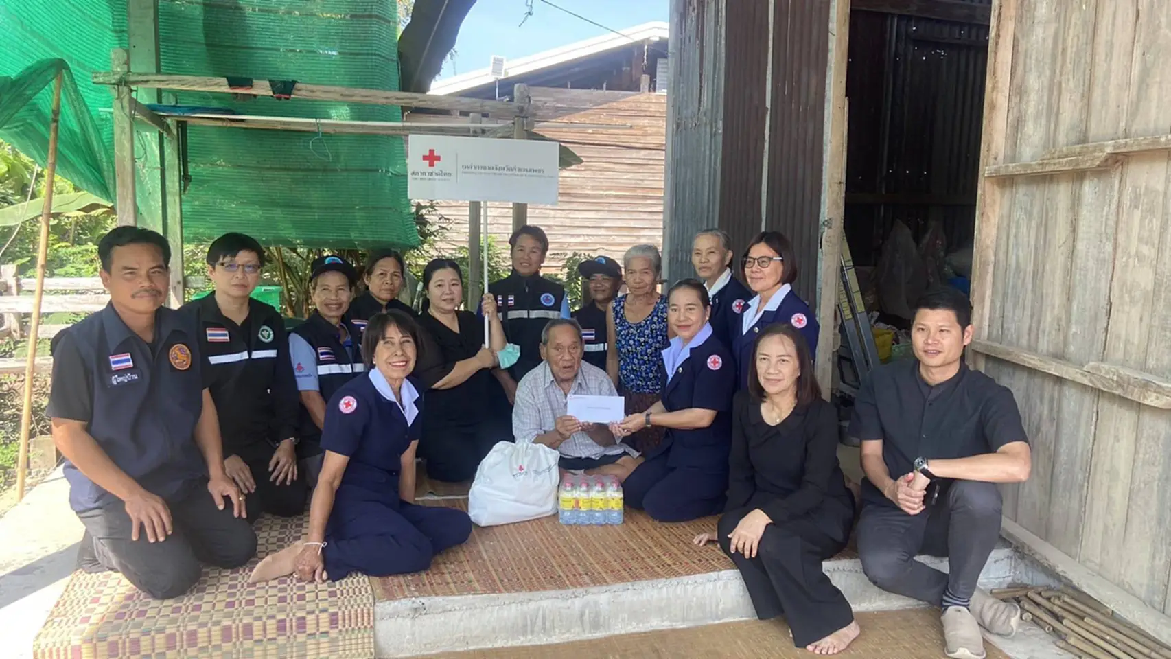 จากนั้นทางคณะเหล่ากาชาดจังหวัดกำแพงเพชร ร่วมกับอำเภอบึงสามัคคี สาธารณสุขอำเภอ องค์กรปกครองส่วนท้องถิ่น อสม.เจ้าหน้าที่ และหน่วยงานที่เกี่ยวข้อง ร่วมลงพื้นที่ให้การสังคมสงเคราะห์แก่ราษฎรที่ประสบความทุกข์ยากเดือดร้อน จำนวน 3 ราย ในพื้นที่อำเภอบึงสามัคคี ได้แก่ นางสุบิน อายุ 81 ปี อยู่ ตำบลวังชะโอน อำเภอบึงสามัคคี จังหวัดกำแพงเพชร เป็นผู้สูงอายุยากไร้ โรคประจำตัวเข่าเสื่อม แขนขาอ่อนแรง อาศัยอยู่ลูกสาว ไม่ได้ประกอบอาชีพ มีรายได้จากเบี้ยผู้สูงอายุ