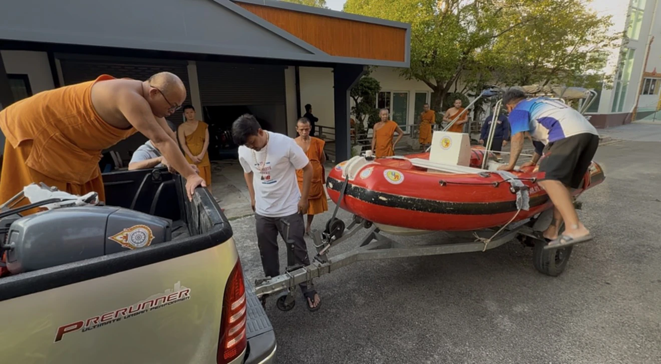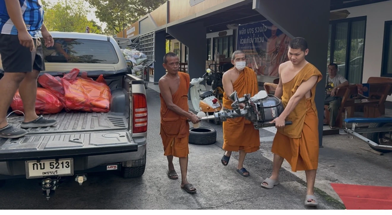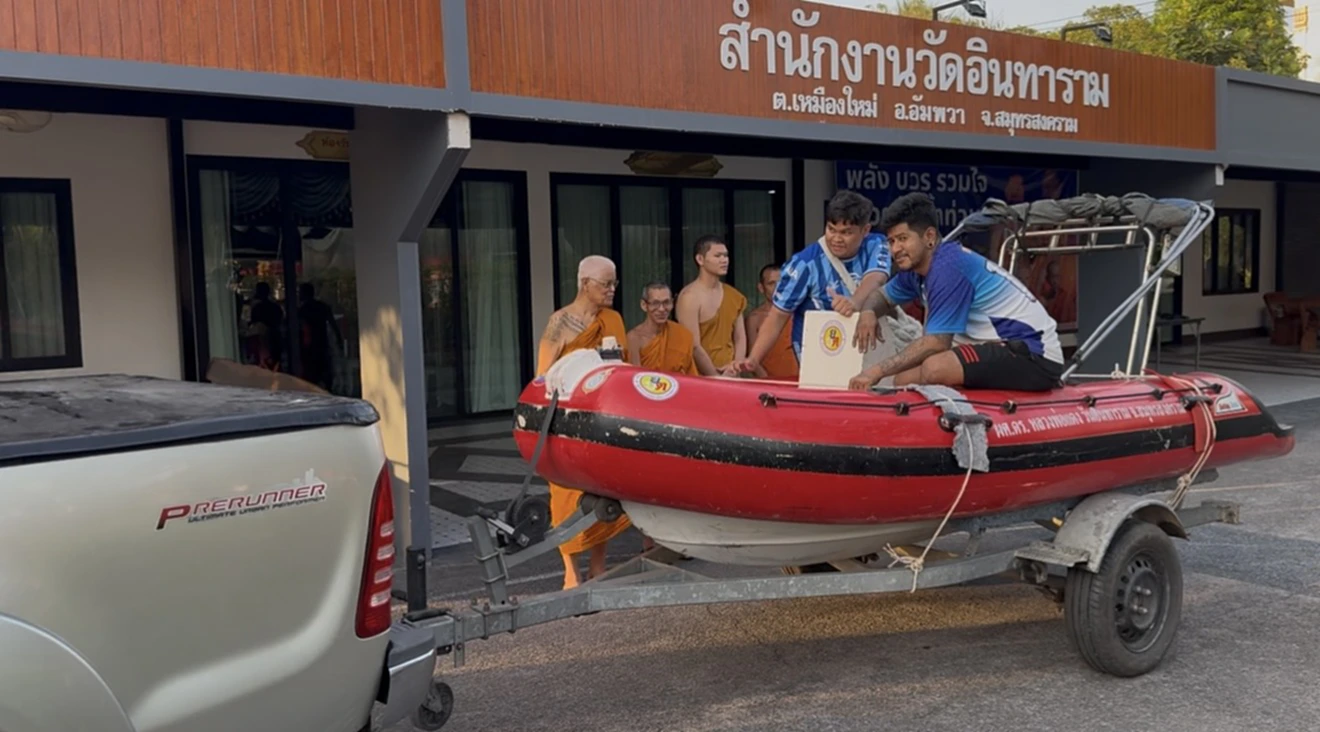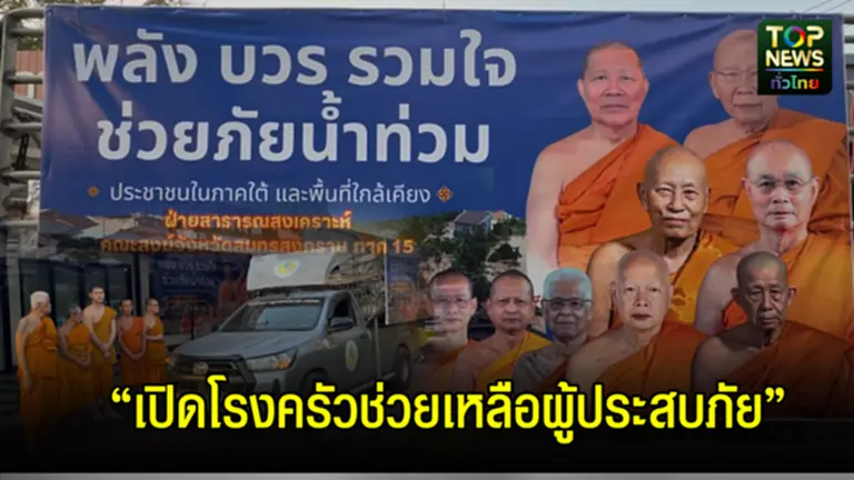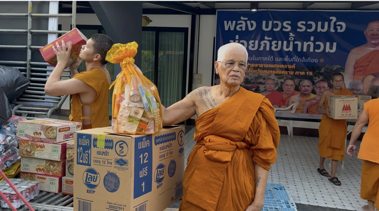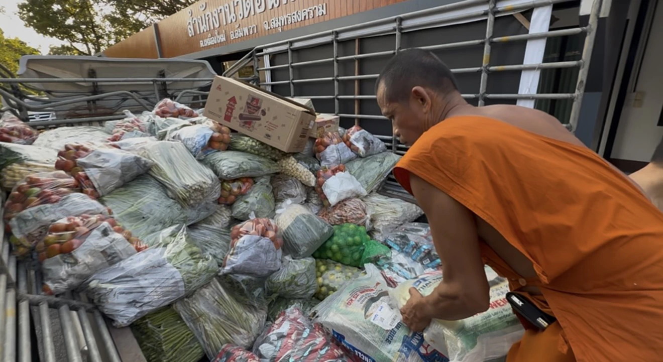 พระสงฆ์จังหวัดสมุทรสงครามไม่ทิ้งประชาชน ร่วมกับชาวบ้านรวบรวมผักสด สังฆทาน ข้าวสารอาหารแห้ง เปิดโรงครัวช่วยผู้ประสบภัยในจังหวัดสงขลา