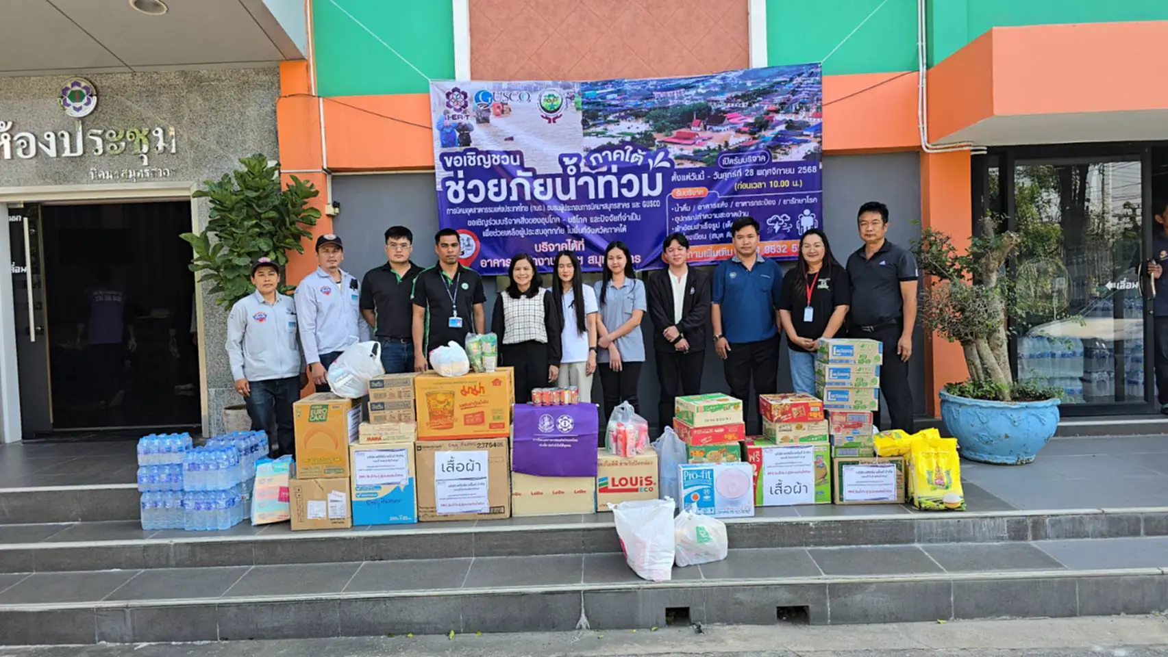 สำนักงานนิคมอุตสาหกรรมสมุทรสาคร ร่วมกับชมรมผู้ประกอบการนิคมอุตสาหกรรมสมุทรสาคร ส่งมอบเครื่องอุปโภคบริโภคเพื่อช่วยเหลือผู้ประสบอุทกภัย