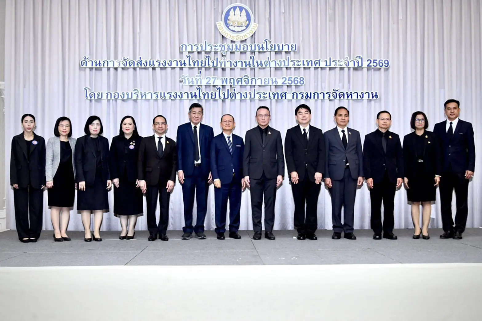 วันที่ 27 พฤศจิกายน 2568 เวลา 09.30 น. นายสมชาย มรกตศรีวรรณ อธิบดีกรมการจัดหางาน เป็นประธานมอบนโยบายด้านการจัดส่งแรงงานไทยไปทำงานต่างประเทศ ประจำปี 2569 โดยมี ผู้บริหารกระทรวงแรงงาน นางสาวอรัญญา สกุลโกศล ประธานสมาคมนายจ้างส่งเสริมแรงงานไทย และ ภาคเอกชนเข้าร่วมกว่า 300 คน ณ ห้องแกรนด์บอลรูม ชั้น 3 โรงแรมดิ เอมเมอรัลด์ เขตห้วยขวาง กรุงเทพมหานคร การประชุมครั้งนี้ถือเป็นเวทีใหญ่ปลายปี ที่เปิดโอกาสให้รัฐและเอกชนร่วมกำหนดทิศทางการส่งออกแรงงานไทยในปี 2569 ซึ่งเป็นช่วงเวลาที่ตลาดแรงงานโลกกำลังแข่งขันกันอย่างเข้มข้น และแรงงานไทยจำเป็นต้อง “ยืนหนึ่งด้านทักษะและความน่าเชื่อถือ” เพื่อรักษาพื้นที่ในตลาดงานต่างประเทศ ทบทวนภาพรวมปี 2568 : แรงงานไทย 200,000 คนในต่างประเทศคือแรงขับเคลื่อนเศรษฐกิจ อธิบดีกรมการจัดหางานกล่าวในที่ประชุมว่า ปีที่ผ่านมา แรงงานไทยในต่างประเทศกว่า 200,000 คน มีบทบาทสำคัญในการนำรายได้กลับประเทศ และช่วยกระตุ้นเศรษฐกิจครัวเรือนไทยอย่างต่อเนื่อง ในปี 2568 มีแรงงานไทยที่เคยไปทำงานต่างประเทศ กว่า 1,300 คน มาถ่ายทอดประสบการณ์ให้แรงงานรุ่นใหม่ ถือเป็นฐานข้อมูลที่มีคุณค่ายิ่งในการพัฒนานโยบายปีถัดไป รวมถึง 5 อันดับประเทศที่มีการจัดส่งแรงงานมากที่สุด ได้แก่ ไต้หวัน อิสราเอล เกาหลี ญี่ปุ่น อินเดีย