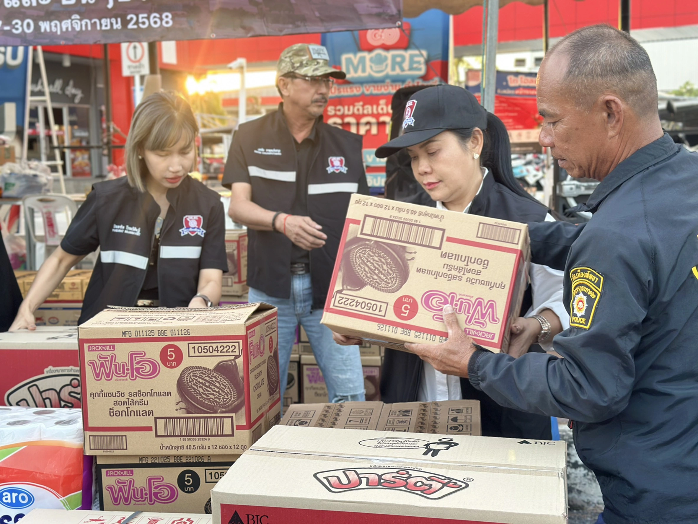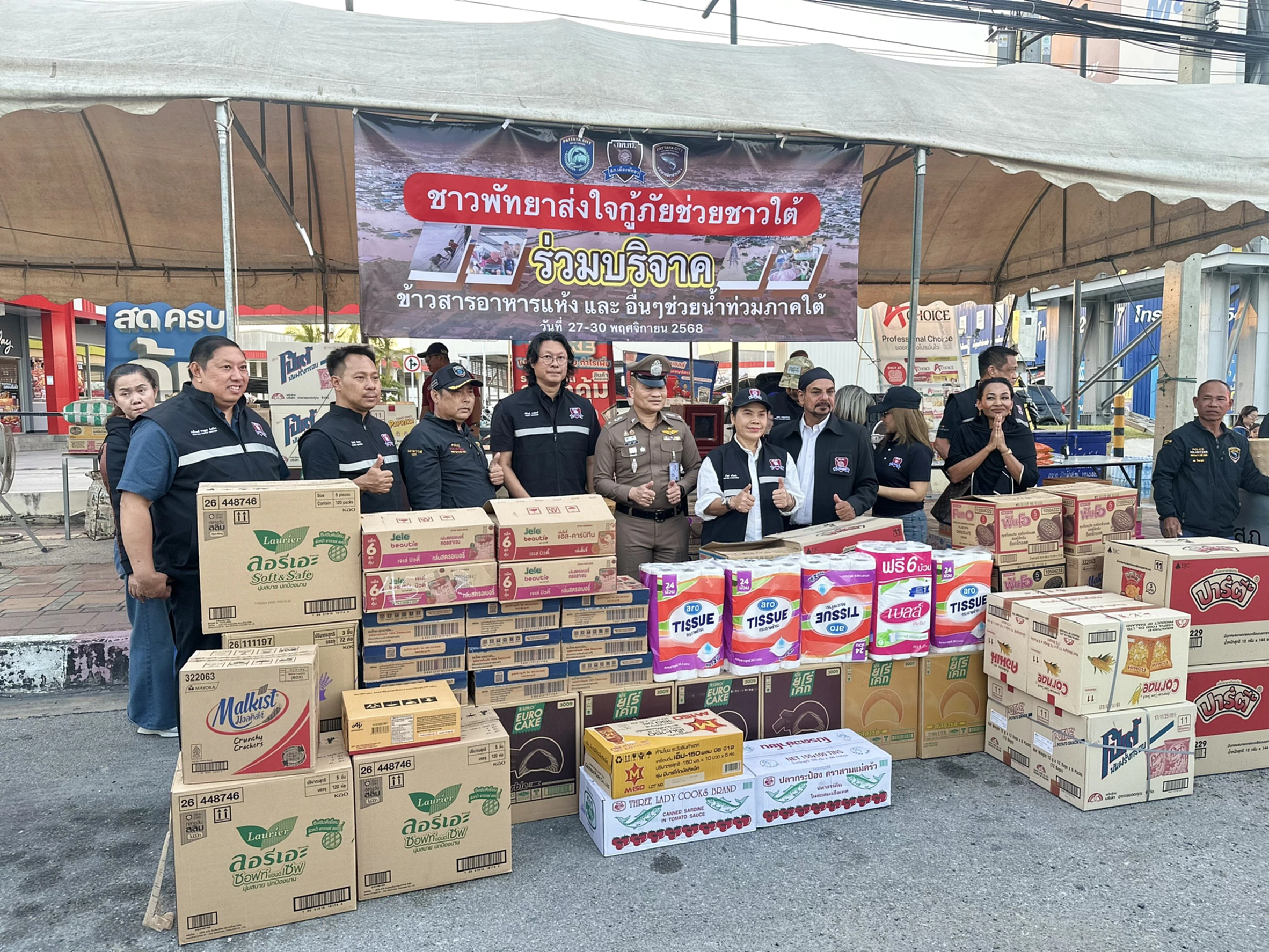 (27 พ.ย.68)นางสาวอำพร แก้วแสง ประธาน กต.ตร.สภ.เมืองพัทยา พร้อมด้วย พ.ต.ท.สุชาติ ดุสดี สวป.สภ.เมืองพัทยา คณะกรรมการ กต.ตร.สภ.เมืองพัทยา เจ้าหน้าที่อาสาตำรวจพัทยา และภาคธุรกิจเมืองพัทยา ร่วมเปิดจุดรับบริจาคสิ่งของเพื่อช่วยเหลือผู้ประสบอุทกภัยในพื้นที่ภาคใต้ บริเวณหน้าห้าง GO WHOLESALE ถนนสุขุมวิท พัทยาใต้