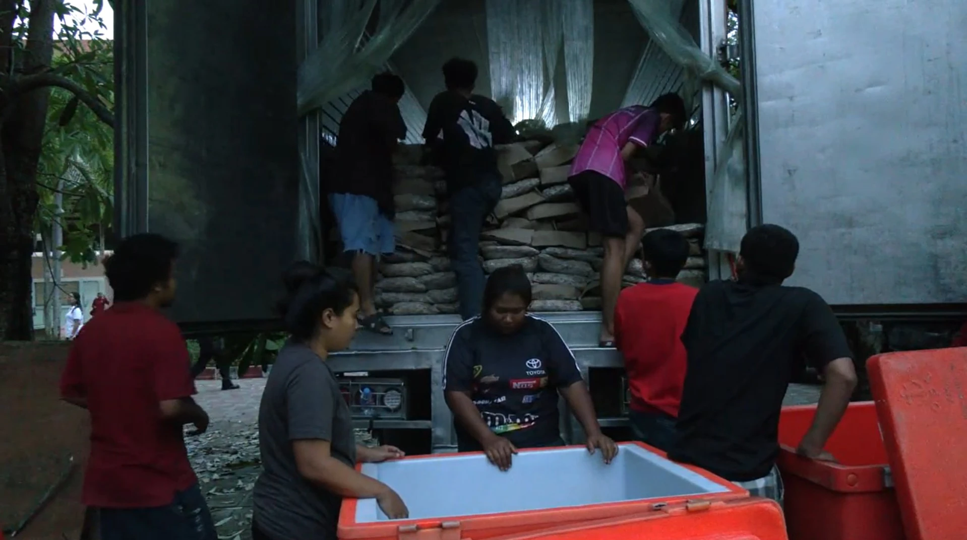 แต่เมื่อมาถึง ได้รับแจ้งจากทางโรงเรียนว่า ตั้งแต่เกิดน้ำท่วมก็มีหน่วยงานต่างๆ เข้ามาบริจาคสิ่งของจำนวนมาก ทั้ง กรุงเทพ, ชุมพร, สุราษฎร์ธานี, พังงา,และนครศรีธรรมราช ซึ่งศูนย์แห่งนี้กำลังประสบปัญหา ไม่มีถังขนาดใหญ่ไว้จัดเก็บของสด อีกทั้งขณะนี้ก็ยังไม่มีน้ำแข็งขาย จึงจำเป็นต้องขอความร่วมมือกับรถที่ขนวัตถุดิบมาให้รออยู่ก่อน เพราะหวั่นว่าของจะเน่าเสีย ซึ่งกำลังประสานขอความช่วยเหลือไปยังหน่วยงานอื่นเพื่อขอลังน้ำแข็งอยู่
