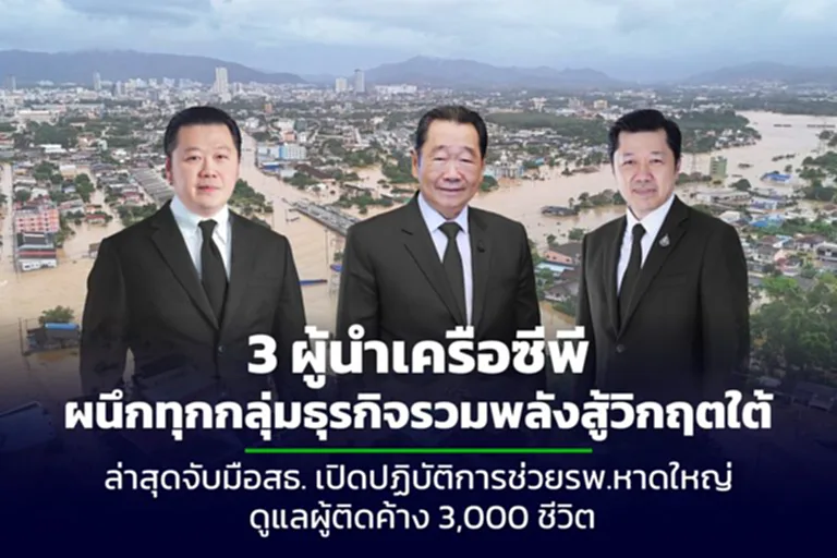 เครือเจริญโภคภัณฑ์ (ซีพี) เดินหน้าระดมทุกศักยภาพเพื่อช่วยเหลือผู้ประสบภัยอย่างเต็มที่ ภายใต้นโยบายของผู้บริหารสูงสุด ได้แก่ นายธนินท์ เจียรวนนท์ ประธานอาวุโส นายสุภกิต เจียรวนนท์ ประธานกรรมการ และ นายศุภชัย เจียรวนนท์ ประธานคณะผู้บริหาร ที่ได้มอบหมายให้ทุกกลุ่มบริษัทในเครือบูรณาการความร่วมมือแบบ “One CP” เพื่อดูแลประชาชนในทุกพื้นที่อย่างเร่งด่วนและทั่วถึง จากนโยบายดังกล่าว เครือซีพีได้ขยายความช่วยเหลือครอบคลุมทั้งภาคใต้ ทั้งการตั้งครัวกลางร่วมกับภาคีเครือข่าย การสนับสนุนวัตถุดิบอาหารแก่ครัวกลางจังหวัด การเปิด “ครัวซีพีอาสา x ซีพีเอฟ” ที่ CP LAND หาดใหญ่ รวมถึงการใช้ศักยภาพของกลุ่มธุรกิจต่าง ๆ เช่น CP AXTRA–แม็คโคร–โลตัส ในการจัดเตรียมอาหารและสิ่งของจำเป็น พร้อมสนับสนุน ภารกิจโดรนบรรทุกของจากทรู คอร์ปอเรชั่น เพื่อลำเลียงของจำเป็นสู่ชุมชนที่ถูกตัดขาดจากน้ำท่วมได้อย่างทันท่วงที และล่าสุด กระทรวงสาธารณสุข และ เครือเจริญโภคภัณฑ์ ได้ประชุมด่วนทางออนไลน์เพื่อระดมความช่วยเหลือโรงพยาบาลหาดใหญ่ ในสังกัดกระทรวงสาธารณสุข ซึ่งตั้งอยู่ใจกลางนครหาดใหญ่ ขาดแคลนน้ำ – อาหาร มีเจ้าหน้าที่ ผู้ป่วย และญาติผู้ป่วยรวมกว่า 3,000 คน โดยมีนโยบาย 4 ด้านเร่งด่วน ประกอบไปด้วย 1.สนับสนุนอาหารพร้อมรับประทาน 2.สนับสนุนอาหารแช่เข็ง 3.สนับสนุนน้ำดื่ม เพื่อสนับสนุนโรงครัวโรงพยาบาลหาดใหญ่ และ 4.สนับสนุนวัตถุดิบสำหรับประกอบอาหารแก่โรงครัว ในเครือข่าย รพ.ตรัง และรพ.พัทลุง