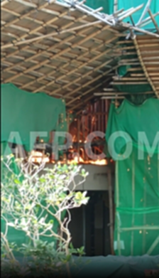 โดยคลิปที่มีการแชร์ในโซเชียลมีเดียเผยวินาทีขณะไฟเริ่มลุกไหม้ใกล้ตาข่ายนิรภัยก่อนลุกลามสู่ด้านบนอย่างรวดเร็ว