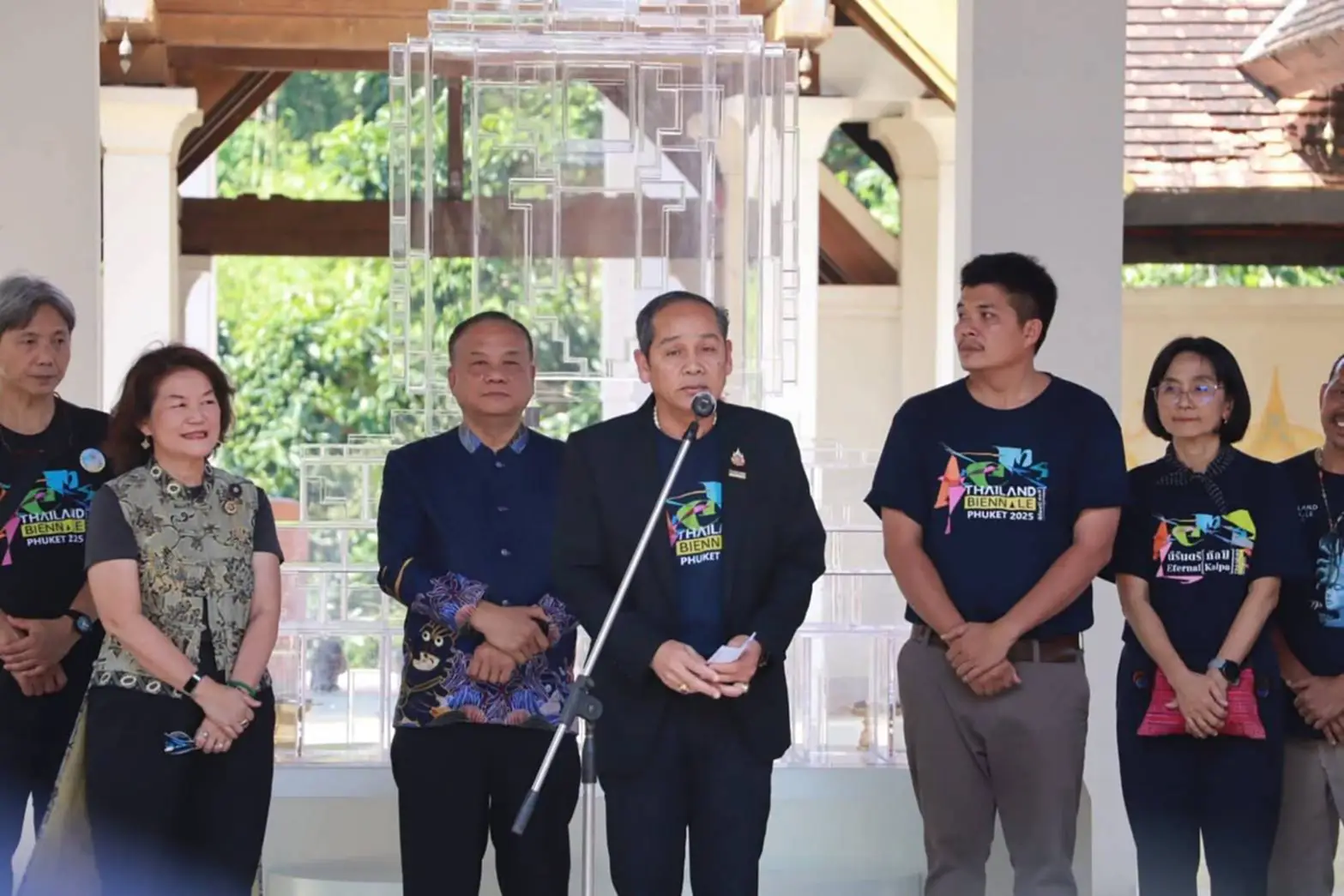 วันที่ 28 พ.ย. 2568 ณ สุโข เวลเนส แอนด์ สปา รีสอร์ท อำเภอเมืองภูเก็ต นายประสพ เรียงเงิน ปลัดกระทรวงวัฒนธรรม เป็นประธานเปิดงาน “สุขโข พาวิเลียน ศาลา 4 ภาค” โดยมีนางเกษร กำเหนิดเพ็ชร ผู้อำนวยการสำนักงานศิลปวัฒนธรรมร่วมสมัย นางพวงผกา เชาวน์ไวย วัฒนธรรมจังหวัดภูเก็ต นายเรวัต อารีรอบ นายกองค์การบริหารส่วนจังหวัดภูเก็ต นางอัญชลี วานิช เทพบุตร นายกสมาคมศิลป์ภูเก็จ รวมถึงศิลปินและภาคีเครือข่ายจากทุกภูมิภาคเข้าร่วมงานอย่างคับคั่ง งานนี้เป็นการเปิดพื้นที่สร้างสรรค์ใหม่เพื่อเชื่อมผู้คนกับศิลปะร่วมสมัยอย่างเข้าถึงง่ายและจับต้องได้จริง