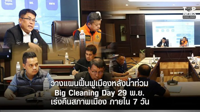 จังหวัดสงขลา ร่วมกับ อบจ.สงขลา และเทศบาลนครหาดใหญ่ วางแผนฟื้นฟูเมืองหลังน้ำท่วม เตรียมเครื่องจักร–กำลังคนกว่า 1,000 ชีวิต พร้อมจัด Big Cleaning Day 29 พ.ย. เร่งคืนสภาพเมือง ภายใน 7 วัน