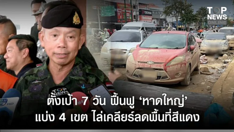 “ผบ.ทสส.” ตั้งเป้า 7 วัน ฟื้นฟูหาดใหญ่ แบ่ง 4 เขต ไล่เคลียร์ลดพื้นที่สีแดง ระดมเครื่องมือจัดการ ขอปชช.ร่วมมือขนย้ายรถ – Top News รายงาน