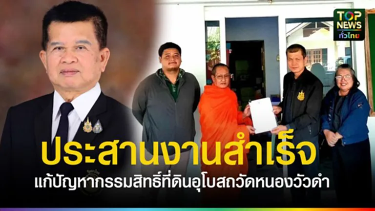 ณพล บริบูรณ์ นักวิชาการ ทางการเมือง ดร.ฉลาด ขามช่วง ปะระธานสภาคนที่ สอง ประสานงานสำเร็จ แก้ปัญหากรรมสิทธิ์ที่ดินอุโบสถวัดหนองวัวดำ กรมป่าไม้อนุญาตใช้พื้นที่แล้ว