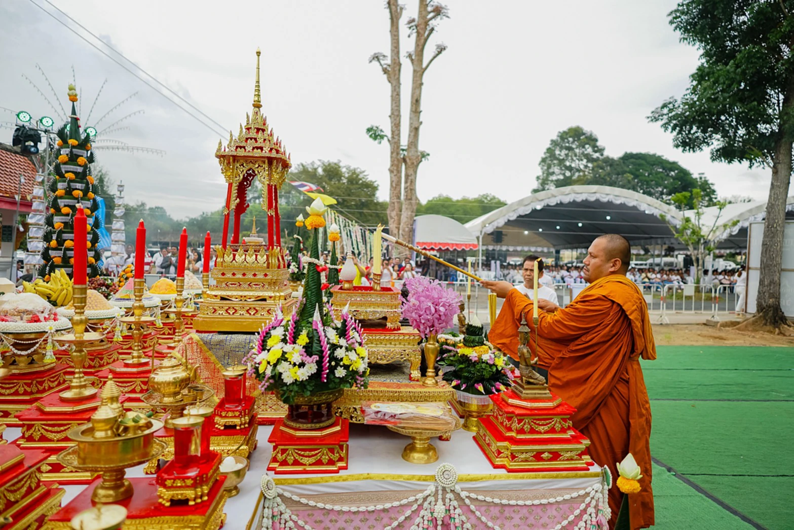 กำหนดการพิธีเริ่มในวันที่ 9 ธ.ค. 2568 เวลา 15.00 น. เป็นต้นไป เป็นพิธีอาบน้ำมนต์องค์การพระเจ้า 5 พระองค์ โดย พระอาจารย์เพ็ญ วัดเขาล้อเหนือ จ.นครสวรรค์ ส่วนในวันที่ 10 ธ.ค. 2568 เริ่มเวลา 07.00 น. เปิดให้ประชาชนสักการะพ่อแก่ และลงทะเบียนรับคิวพิธีครอบเศียรครู ต่อด้วยเวลา 07.30 น. พิธีทำบุญอุทิศถวายบูรพาจารย์ จากนั้นเวลา 09.19 น. พิธีบวงสรวง ไหว้ครู ขอขมาครู พร้อมพิธีเบิกเนตรพญานาคพ่อแก่นารอด และพิธีทำน้ำมนต์ ช่วงเที่ยง เวลา 12.00 น. มีพิธีมอบทุนการศึกษา และเวลา 12.19 น. การแสดงรำถวาย ต่อด้วยเวลา 14.19 น. พิธีพุทธาภิเษกวัตถุมงคลผาลไถและวัตถุมงคลภายในวัด รวมถึงพิธีถวายผ้าป่าบูชาครู ปิดท้ายเวลา 16.19 น. ด้วยพิธีครอบเศียรครู รับญาณบารมี “พ่อแก่พันล้าน”