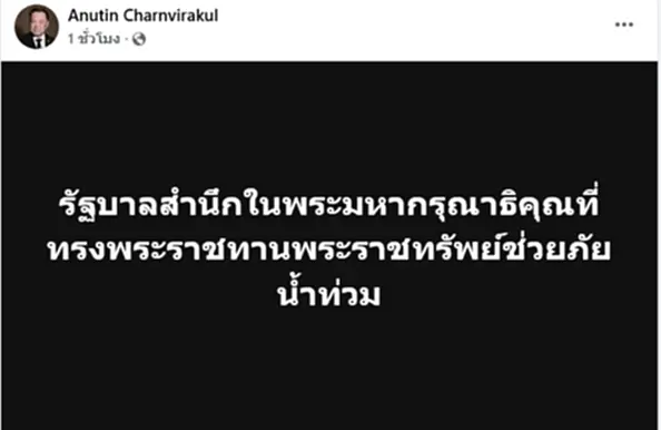 ความว่า กราบเรียน นายกรัฐมนตรี พระบาทสมเด็จพระเจ้าอยู่หัว ทรงห่วงใยราษฎรที่ประสบเหตุอุทกภัยในพื้นที่ภาคใต้ บุคลากรทางการแพทย์ และเจ้าหน้าที่ทุกคนที่ปฏิบัติหน้าที่อยู่ในพื้นที่ดังกล่าว