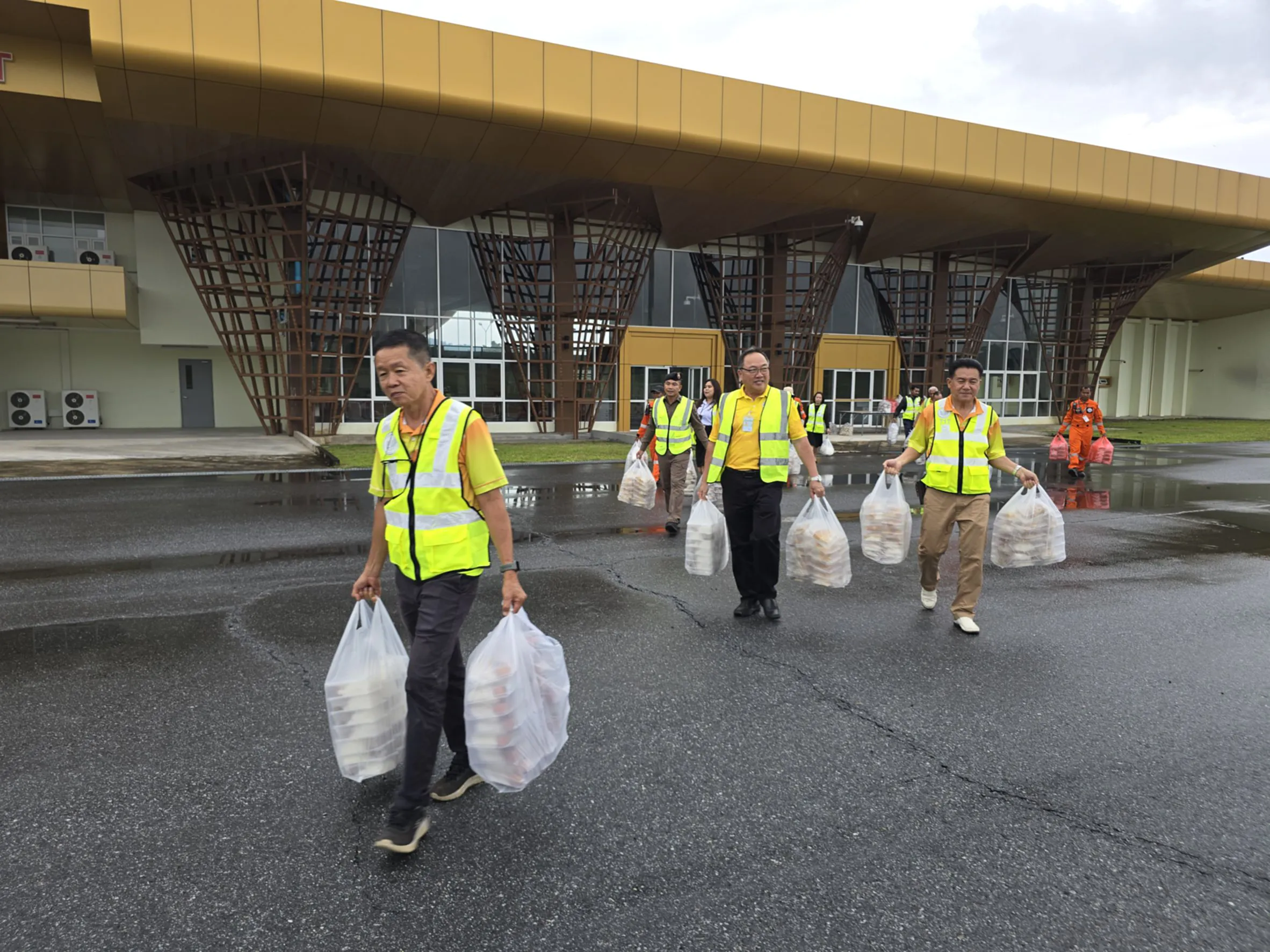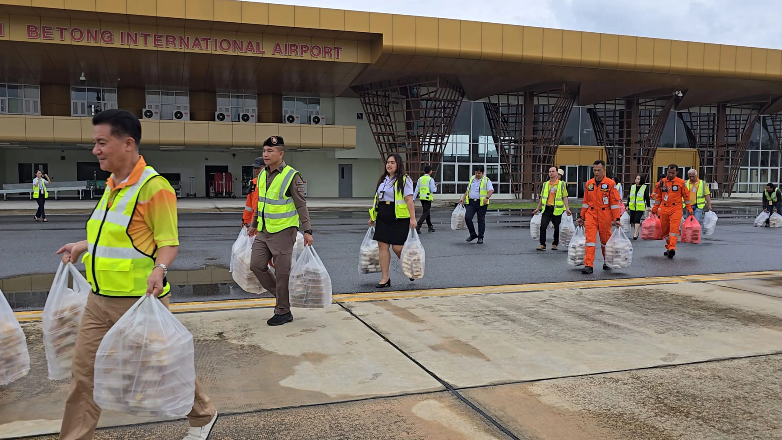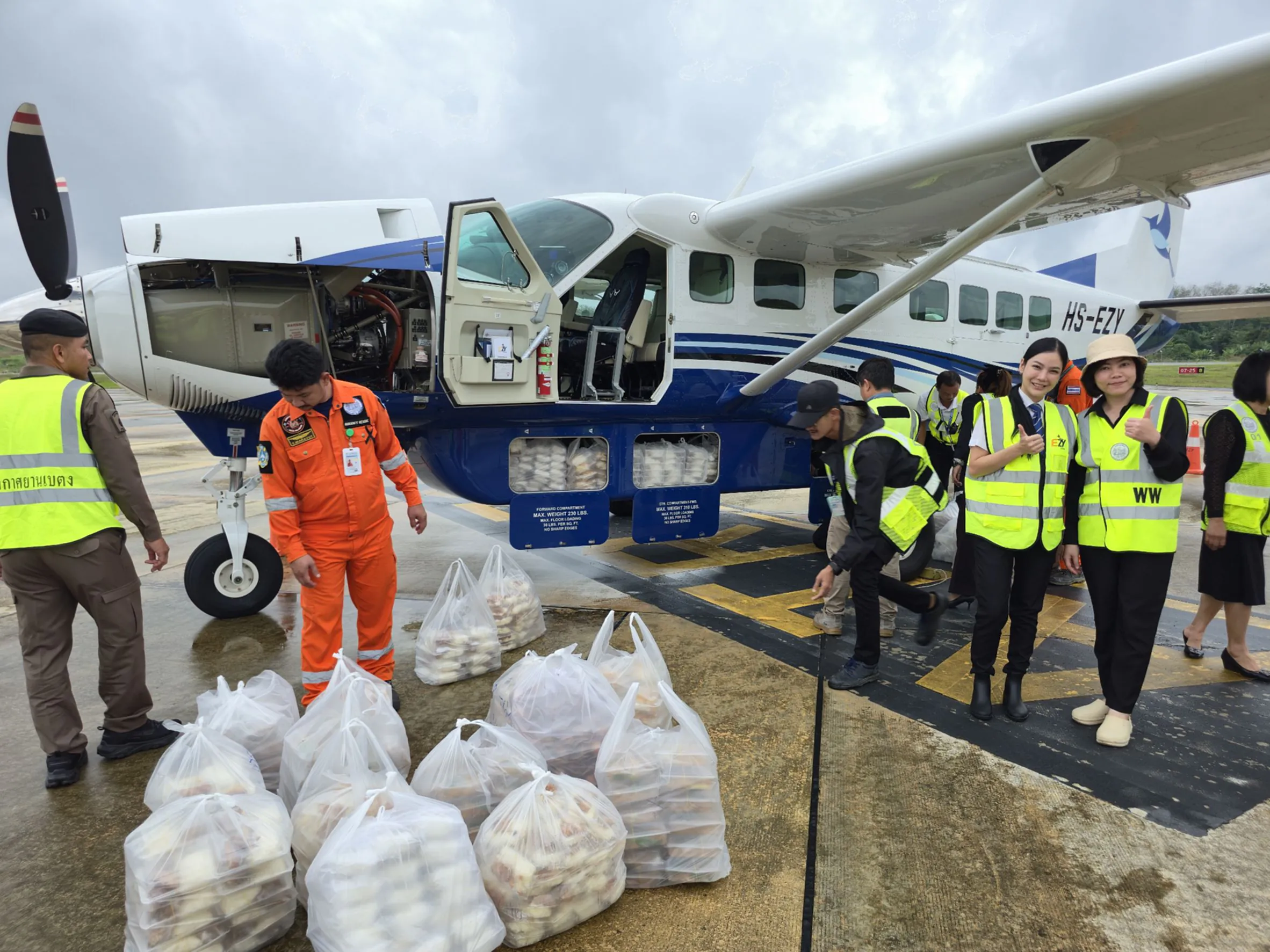 วันที่ 29 พ.ย. 2568 ผู้สื่อข่าวรายงานว่า ที่ท่าอากาศยานเบตง อ.เบตง จ.ยะลา นายสกุล เล็งลัคน์กุล ประธานมูลนิธิอำเภอเบตง ร่วมกับ นางกิ่งจันทร์ ไข่แก้ว ผู้อำนวยการท่าอากาศยานเบตง และ พ.ต.ท.ทีปวัฒน์ ทองบุ สวญ.สภ.ยะรม ลำเลียงข้าวกล่องจำนวน 1,800 กล่อง ซึ่งปรุงโดยประชาชนชาวเบตง เพื่อส่งต่อไปช่วยผู้ประสบภัยน้ำท่วมและนักท่องเที่ยวที่ติดค้างบริเวณสนามบินหาดใหญ่ ผ่านสายการบิน Ezy Airlines ระหว่างวันที่ 28–30 พฤศจิกายน