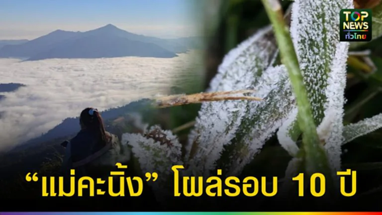 วันที่ 29 พ.ย. 68 ผู้สื่อข่าวรายงานว่า บริเวณดอยผาตั้ง อ.เวียงแก่น จ.เชียงราย เช้าวันนี้สภาพอากาศหนาวจัดต่อเนื่อง อุณหภูมิลดต่ำสุดอยู่ที่ประมาณ 4 องศาเซลเซียส ส่งผลให้เกิดปรากฏการณ์ น้ำค้างแข็ง หรือ “แม่คะนิ้ง” บนยอดหญ้าและริมใบไม้หลายจุด ซึ่งถือเป็นครั้งแรกในรอบ กว่า 10 ปี ที่พื้นที่แห่งนี้ได้กลับมาพบแม่คะนิ้งอีกครั้ง
