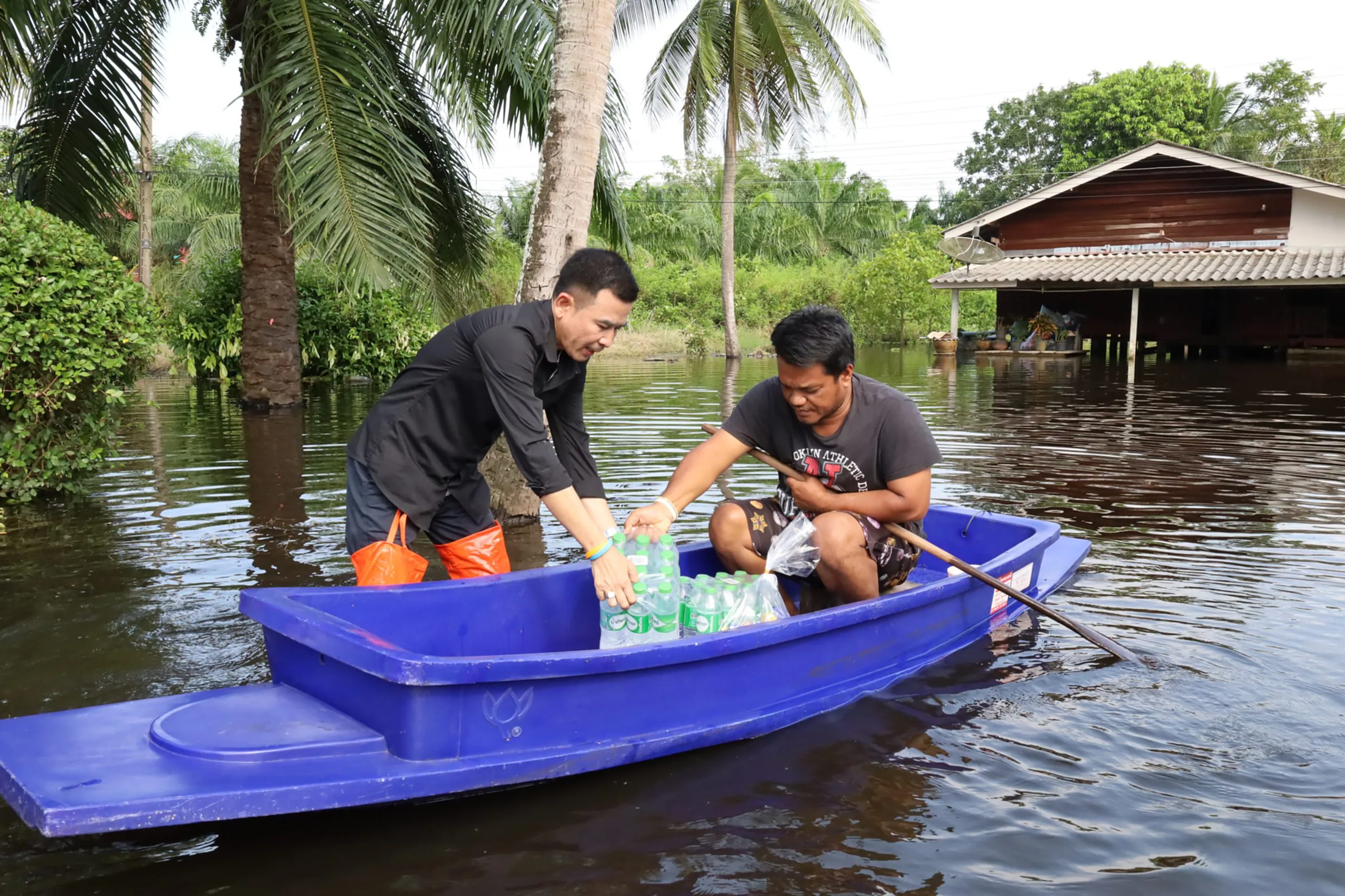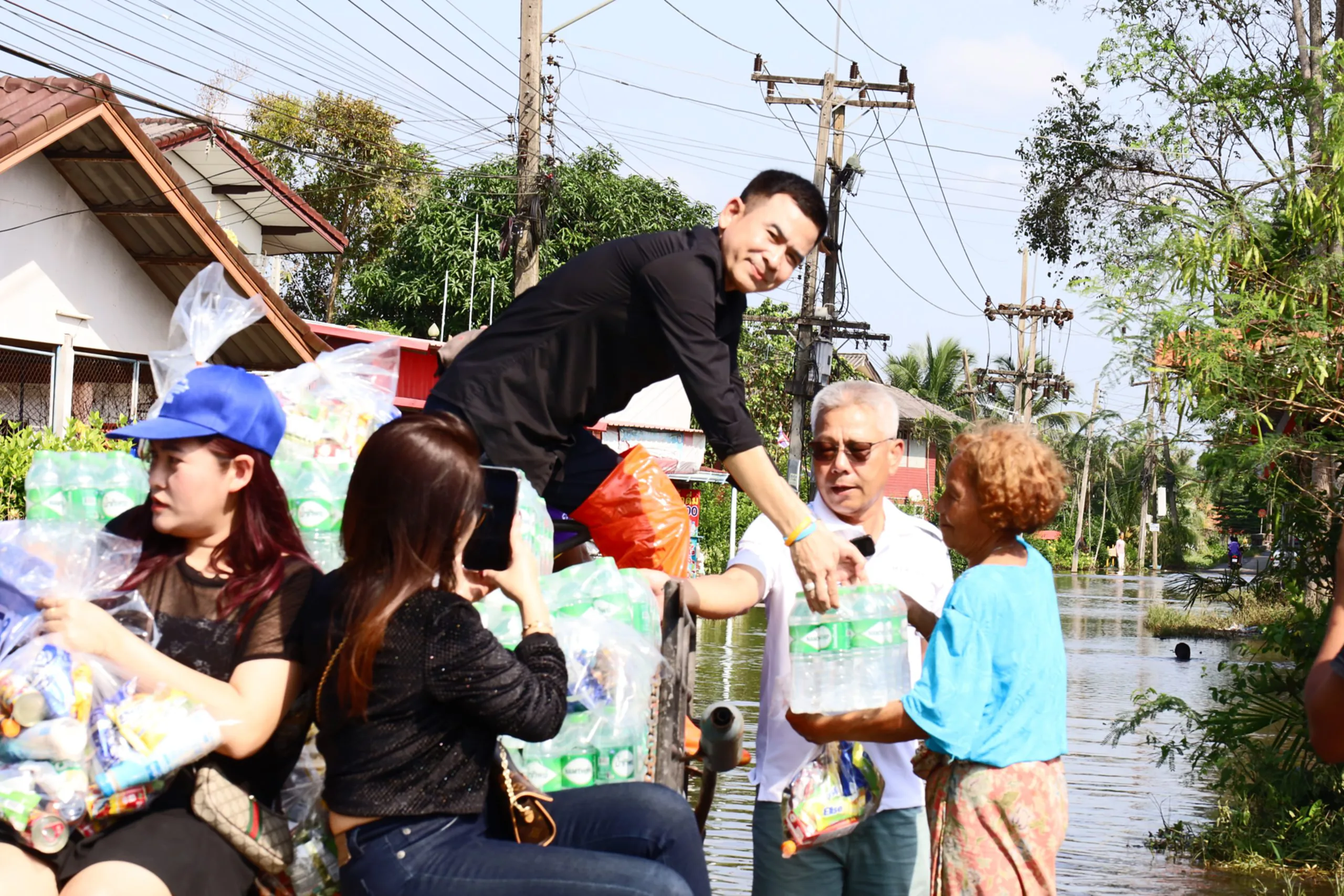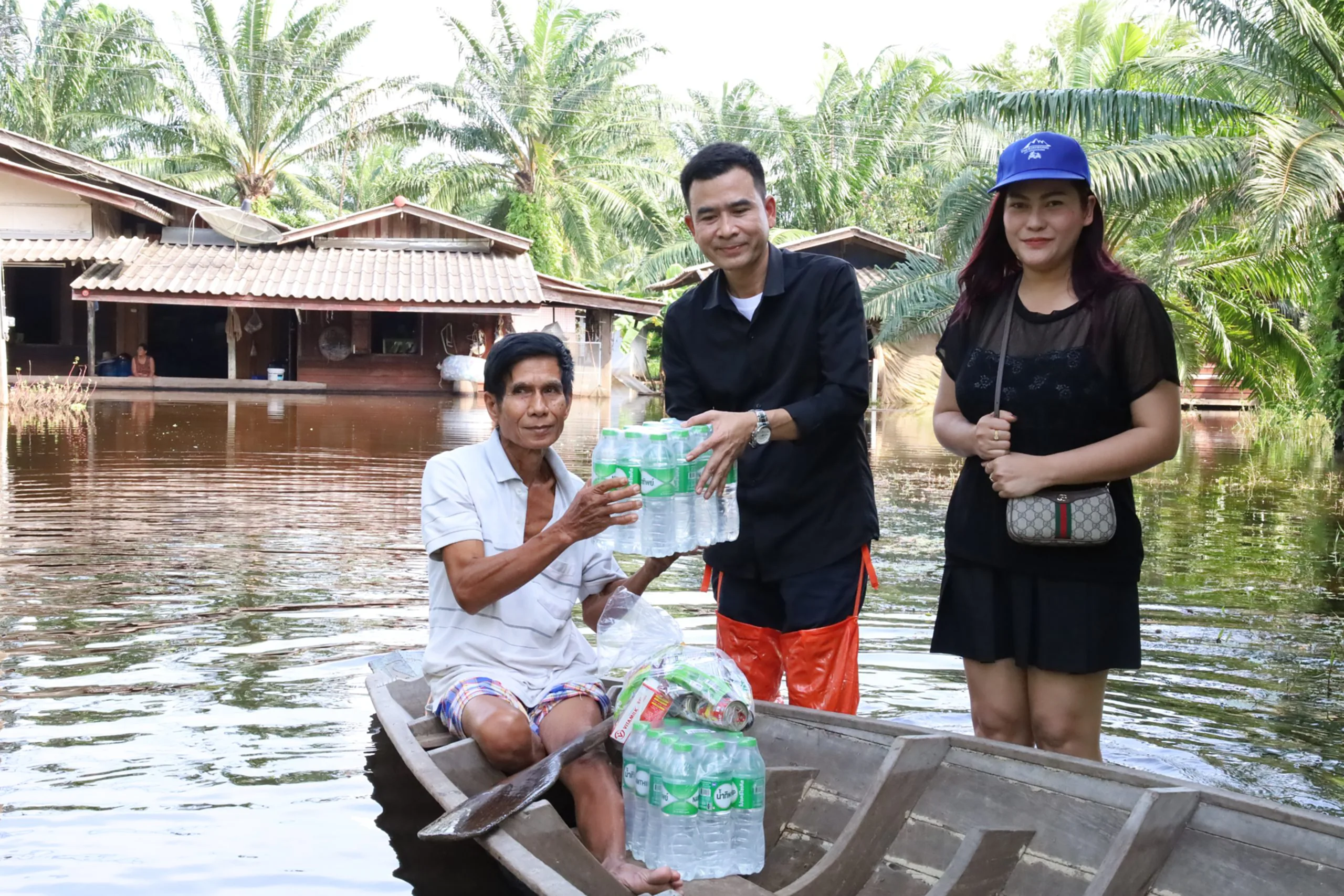 การลงพื้นที่ในครั้งนี้เป็นไปด้วยบรรยากาศที่อบอุ่นและเป็นมิตร สมาชิกกลุ่ม “ก่อการดี” ได้ร่วมกันขนย้ายถุงยังชีพและน้ำดื่ม ซึ่งได้รับการสนับสนุนจากบริษัทหาดทิพย์ จำกัด เพื่อจัดสรรให้แก่ผู้ประสบภัยในพื้นที่ที่ยังมีน้ำท่วมขัง ซึ่งจุดนี้เป็นจุดที่มีความยากลำบากในการเข้าถึงจึงจำเป็นที่จะต้องมีผู้ชำนาญทางนำไป