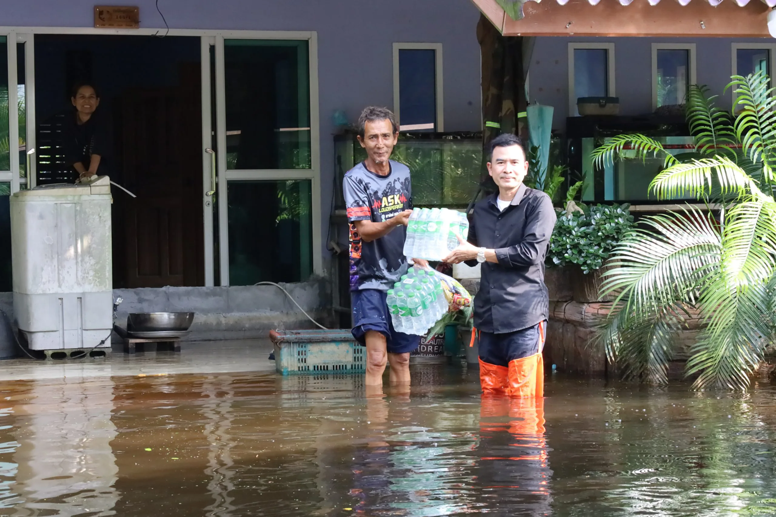 ทั้งนี้ กลุ่มจิตอาสาได้รับความร่วมมือจากประชาชนในชุมชน โดยมีชาวบ้านอาสาขับรถสามล้อพ่วงหลังเพื่อนำคณะลงพื้นที่ในจุดที่รถยนต์ทั่วไปไม่สามารถเข้าถึงได้ สมาชิกกลุ่มจิตอาสา “ก่อการดี” ได้เดินลุยน้ำเข้าไปมอบถุงยังชีพถึงบ้านเรือนผู้ประสบภัย แต่มีบางบ้านที่ยังมีน้ำท่วมขังสูง เจ้าของบ้านต้องพายเรือออกมารับถุงยังชีพด้วยตนเอง ซึ่งเป็นการช่วยสร้างความอบอุ่นใจและรอยยิ้มให้แก่ประชาชนที่อยู่ในสภาวะยากลำบากจากเหตุอุทกภัยครั้งนี้เป็นอย่างมาก.