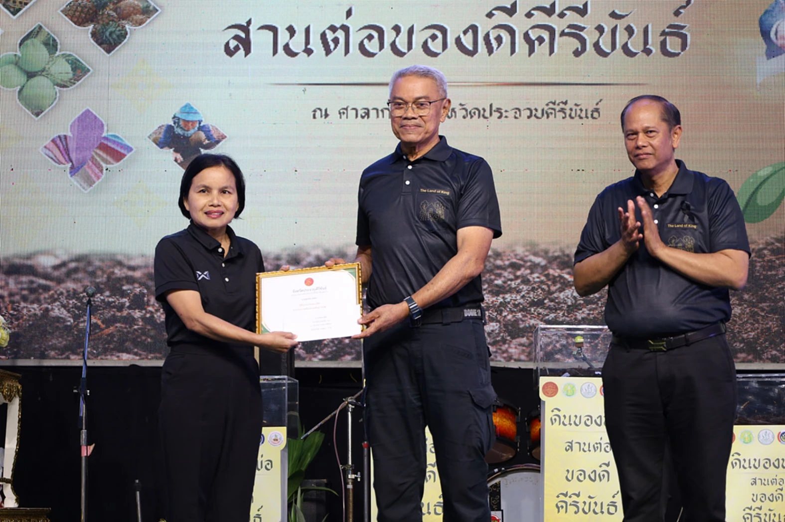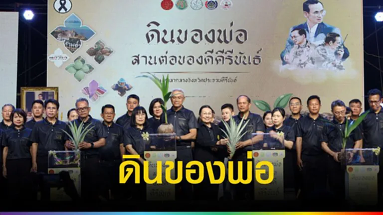 วันที่ 29 พ.ย. 2568 จังหวัดประจวบคีรีขันธ์จัดพิธีเปิดงาน “ดินของพ่อ สานต่อของดีคีรีขันธ์” ณ เวทีกลางสวนสาธารณะเฉลิมพระเกียรติ ร.9 โดยมีนายวิวัฒน์ ศัลยกำธร นายกสมาคมดินโลก เป็นประธานในพิธี พร้อมด้วยนายสิทธิชัย สวัสดิ์แสน ผู้ว่าราชการจังหวัดประจวบฯ คณะผู้บริหารสมาคมดินโลก ส่วนราชการ และประชาชนเข้าร่วมอย่างคับคั่ง งานกำหนดจัดขึ้นระหว่างวันที่ 29 พฤศจิกายน – 8 ธันวาคม 2568 เพื่อเทิดพระเกียรติและเผยแพร่พระราชกรณียกิจด้านการพัฒนาดิน การจัดการน้ำ เกษตรยั่งยืน รวมถึงการอนุรักษ์ผ้าไทย อันเป็นมรดกที่สืบสานจากพระบาทสมเด็จพระบรมชนกาธิเบศร มหาภูมิพลอดุลยเดชมหาราช บรมนาถบพิตร และสมเด็จพระนางเจ้าสิริกิติ์ พระบรมราชินีนาถ พระบรมราชชนนีพันปีหลวง ตลอดจนส่งเสริมทักษะและองค์ความรู้ด้านทรัพยากรธรรมชาติและสินค้าเกษตรของดีประจวบฯ เพื่อเพิ่มรายได้และช่องทางการตลาดให้เกษตรกรและผู้ผลิตสินค้าชุมชน