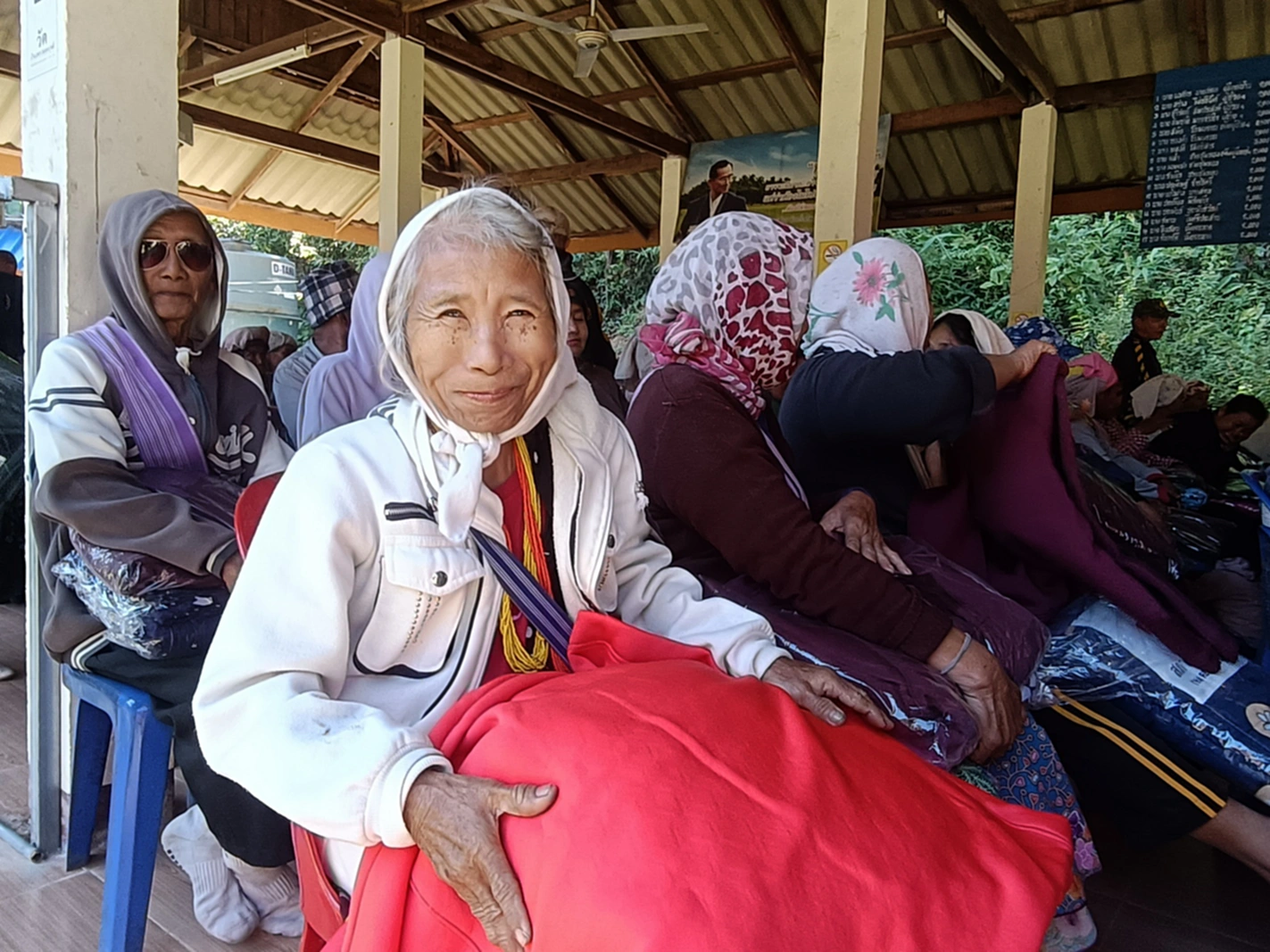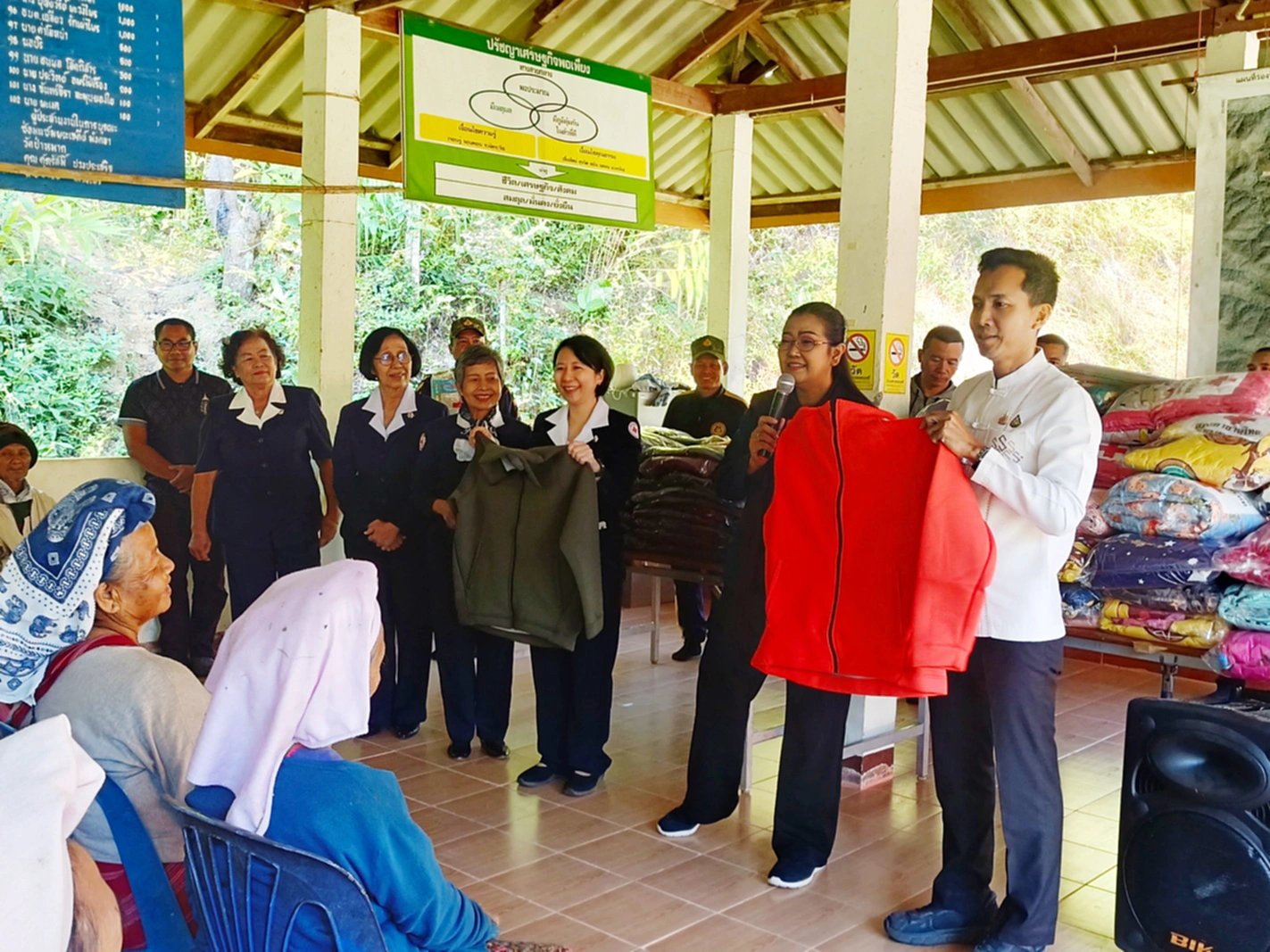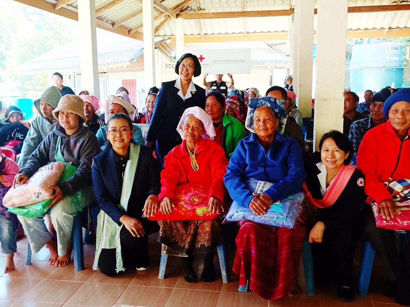 นายกเหล่ากาชาดจังหวัดแม่ฮ่องสอน มอบเสื้อกันหนาวและผ้าห่มกันหนาวให้ราษฏรบ้านป่าหมาก 100 ราย