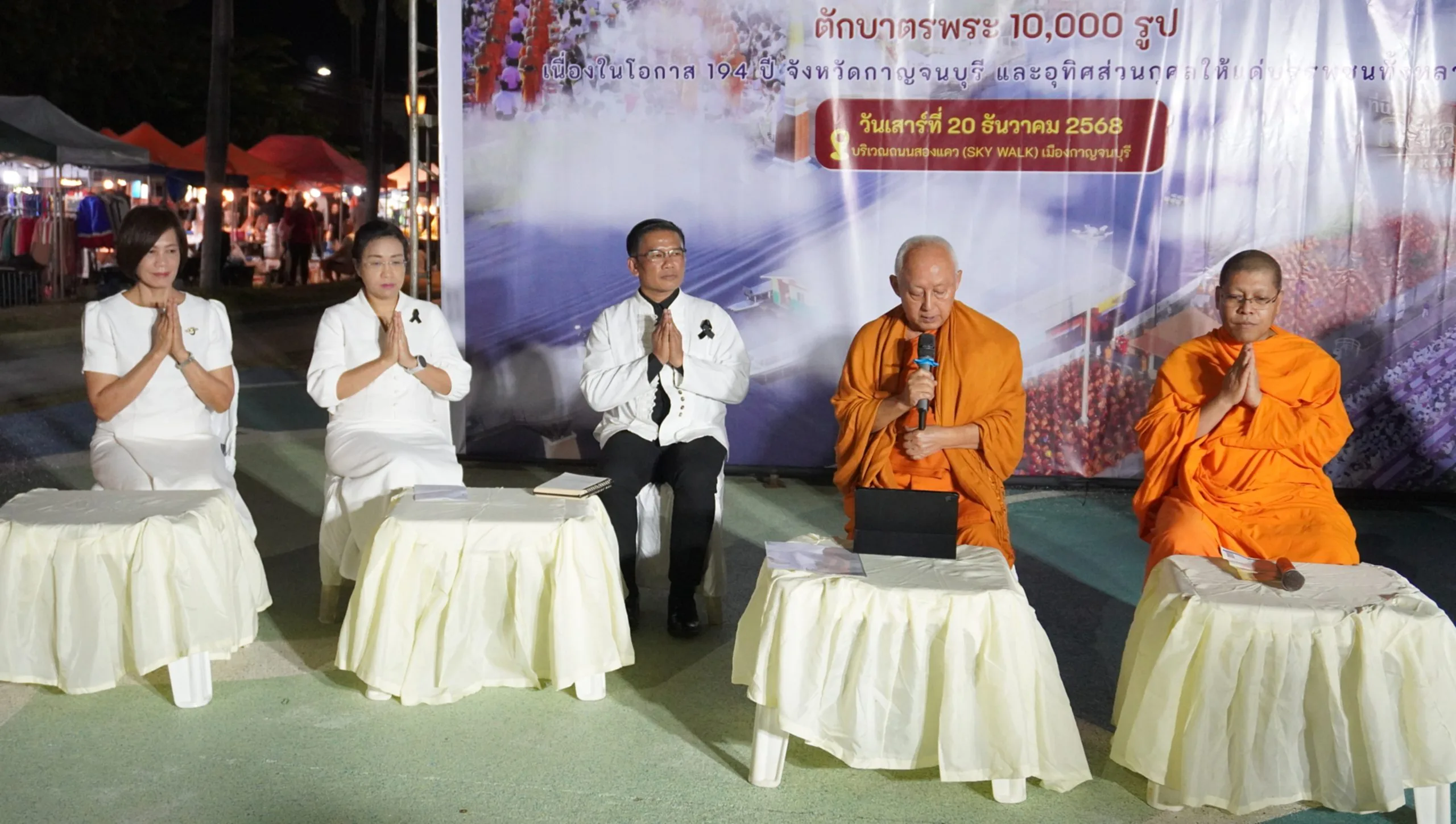 วันที่ 28 พ.ย.68 ณ ลานกิจกรรม Sky Walk โซนปลายสักทอง จังหวัดกาญจนบุรี ได้มีการจัดงานแถลงข่าวเตรียมความพร้อมพิธีตักบาตรพระ 10,000 รูป ซึ่งจัดขึ้นเนื่องในโอกาสทำบุญเมืองครบรอบ 194 ปีจังหวัดกาญจนบุรี และเพื่ออุทิศถวายเป็นพระราชกุศลแด่สมเด็จพระนางเจ้าสิริกิติ์พระบรมราชินีนาถพระบรมราชชนนีพันปีหลวง