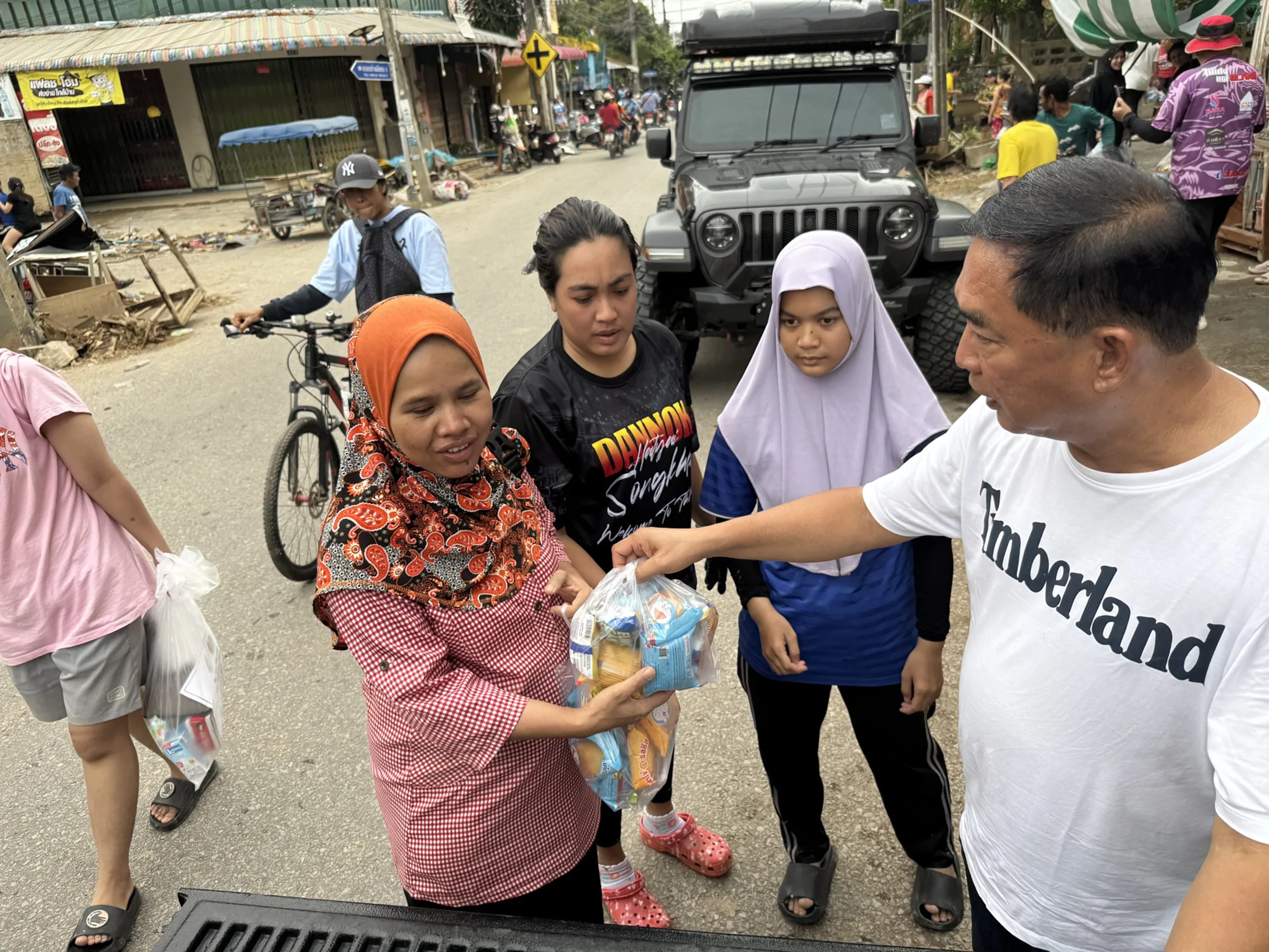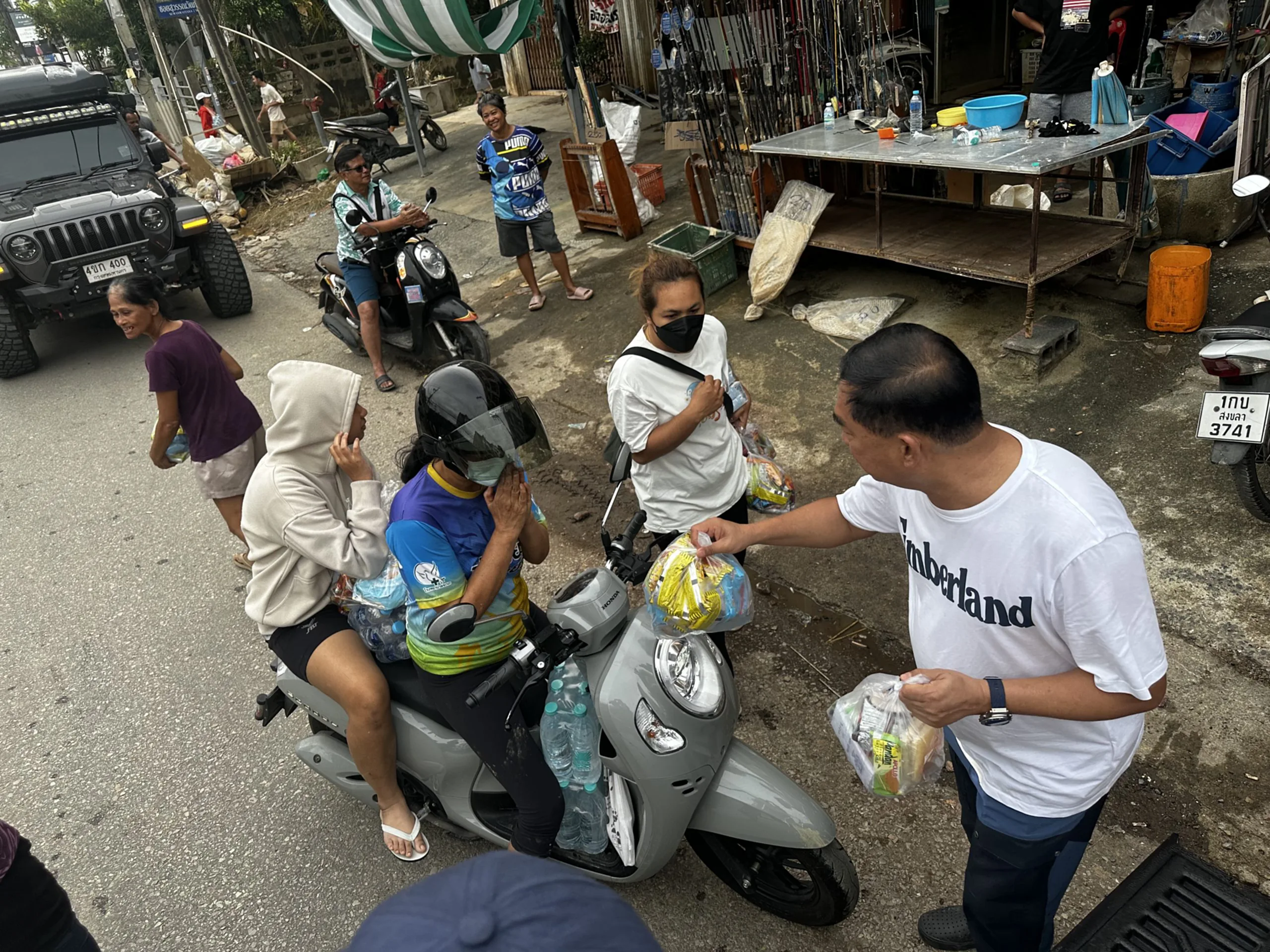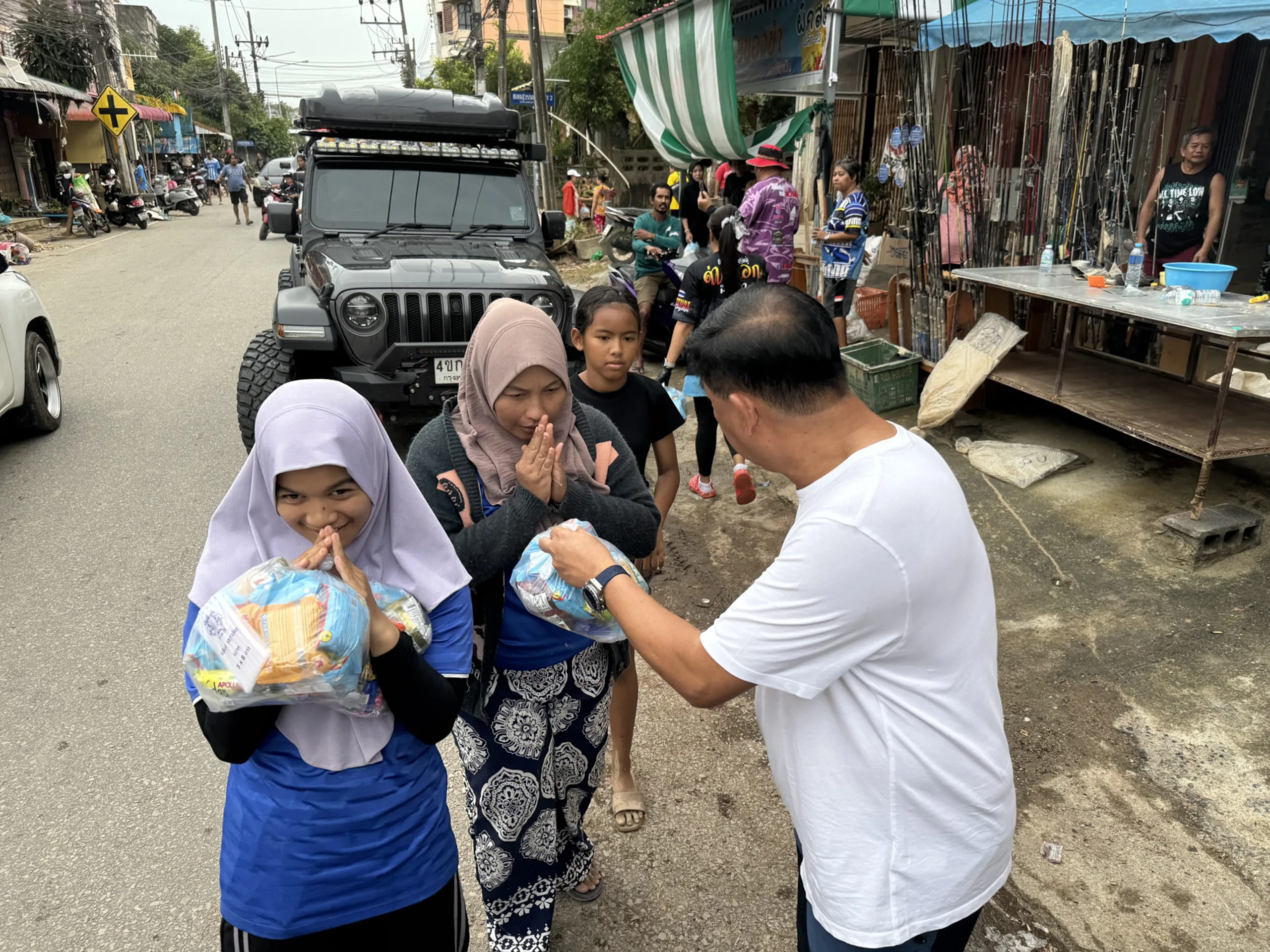 “ช่วงที่ทีมเรากำลังเตรียมของประทังชีวิตสำหรับผู้ที่กำลังหิวโหยยังไม่ได้รับการแจกจ่ายอาหารอย่างเพียงพอ ก็ได้มีชาวหาดใหญ่หลายๆ ท่านนำอาหาร สิ่งของส่งมาให้เราเพื่อร่วมสมทบไปแจกจ่ายในพื้นที่อีกด้วย”