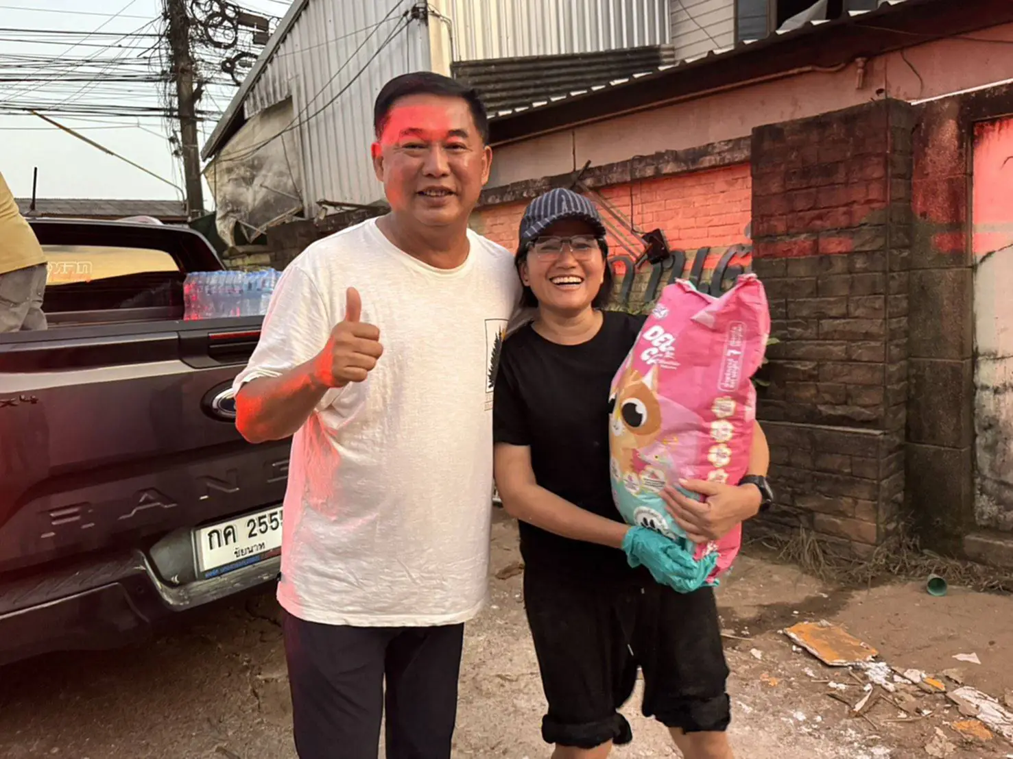 จากการลงพื้นที่อย่างต่อเนื่องทำให้เห็นความเสียหายที่เกิดขึ้น ข้าวของทรัพย์สินเสียหาย ชาวบ้านที่อพยพเริ่มกลับเข้าไปดู สำรวจบ้าน ร้านของตนเอง บางคนสิ้นเนื้อประดาตัว ภารกิจในวันนี้จึงเน้นไปที่การช่วยเยียวยา บรรเทาความลำบากที่เกิดขึ้นในพื้นที่ชุมชนโชคสมาน 5 เขต 8 ชุมชนโรงแรมพาราไดซ์ แยกเกลอเมือง ชุมชนคลองแห หมู่บ้านพลุฉิมพลี และบ้านหารหมู่ที่ 1 และหมู่ที่ 2 โดยมอบสิ่งของเครื่องใช้ที่จำเป็น อาหารเพื่อประทังชีวิตในช่วงที่กำลังจะฟื้นฟู ไม่ว่าจะเป็นเสื้อผ้า ผ้าอ้อมเด็กและผู้ใหญ่ ผ้าอนามัย ยาสามัญ อุปกรณ์ทำแผล ผ้าห่ม ทิชชู่ ยาสีฟัน แปรงสีฟัน สบู่ ยาสระผม ข้าวสาร น้ำดื่ม ขนม อาหารแห้ง อาหารพร้อมทาน และรวมถึงอาหารน้องหมา น้องแมวด้วย