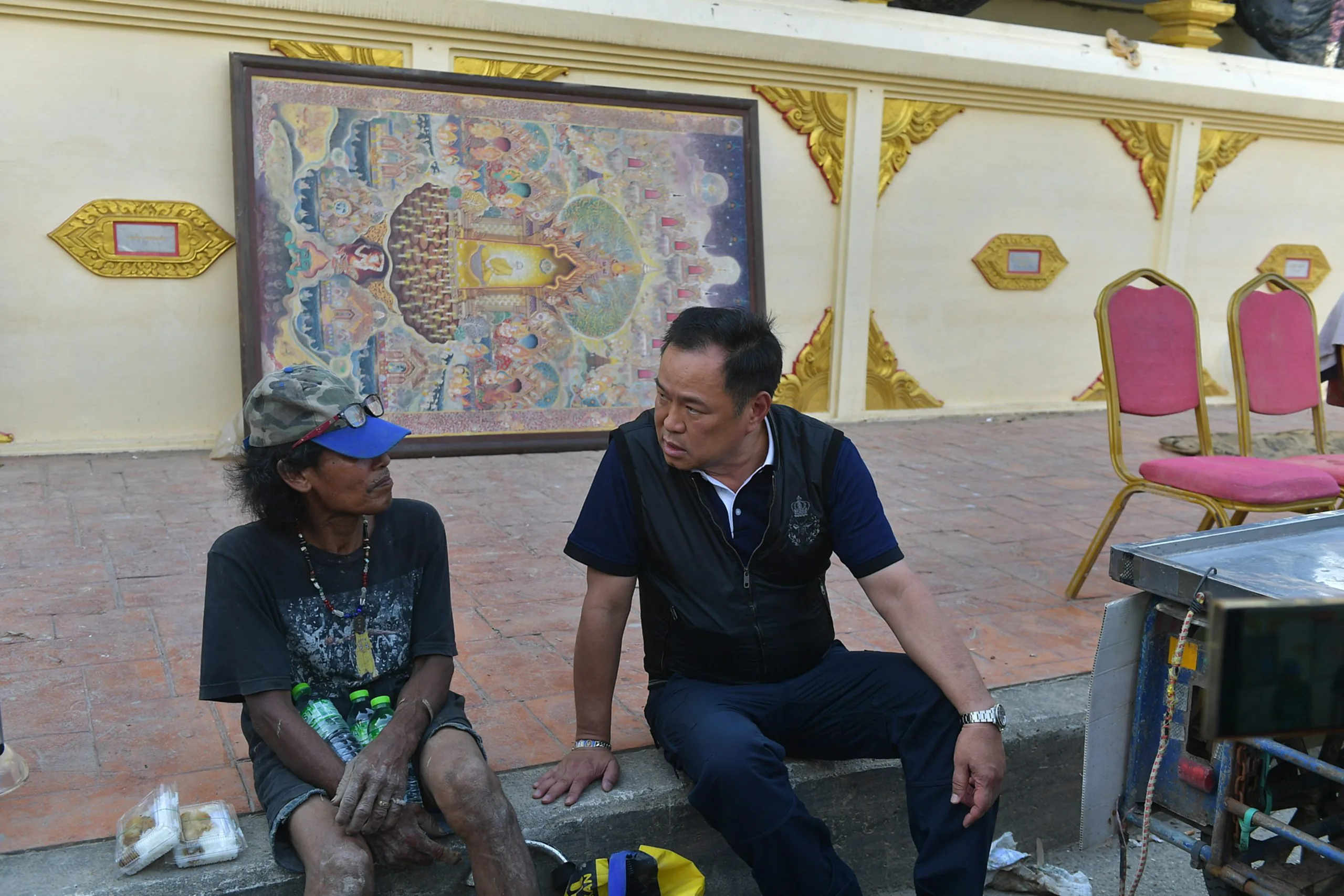 จากนั้นเวลา 15.20 น.นายกฯ ได้ลงจากรถยกสูง บริเวณหน้าวัดโคกสมานคุณ และเดินนำอาหาร น้ำดื่ม และยาไปแจกให้กับประชาชนที่ออกมาทำความสะอาดบ้าน หลังจากน้ำลด ระหว่างนั้น นายกฯ ได้เดินเข้าไปสำรวจความเสียหายในบ้านของประชาชน พร้อมสอบถามถึงความเสียหาย พร้อมทั้งให้กำลังใจ และบอกถึงมาตรการเงินกู้ 100,000 บาท ดอกเบี้ย 0 % 6 เดือน – 1 ปี พร้อมกันนี้นายกฯได้สอบถามประชาชนทุกคนที่ขับรถผ่านว่า “ทานข้าวแล้วหรือยั” โดยชาวบ้านบอกนายกฯว่า ให้เร่งอนุมัติเงินเยียวยา 9,000 บาท เร็ว ๆ หน่อย ซึ่งนายกฯ ได้ตอบสั้น ๆ ว่า สัปดาห์หน้า พร้อมให้ไปลงทะเบียนรับเงินเยียวยา และจะมีเงินกู้ดอกเบี้ย 0 % ด้วย