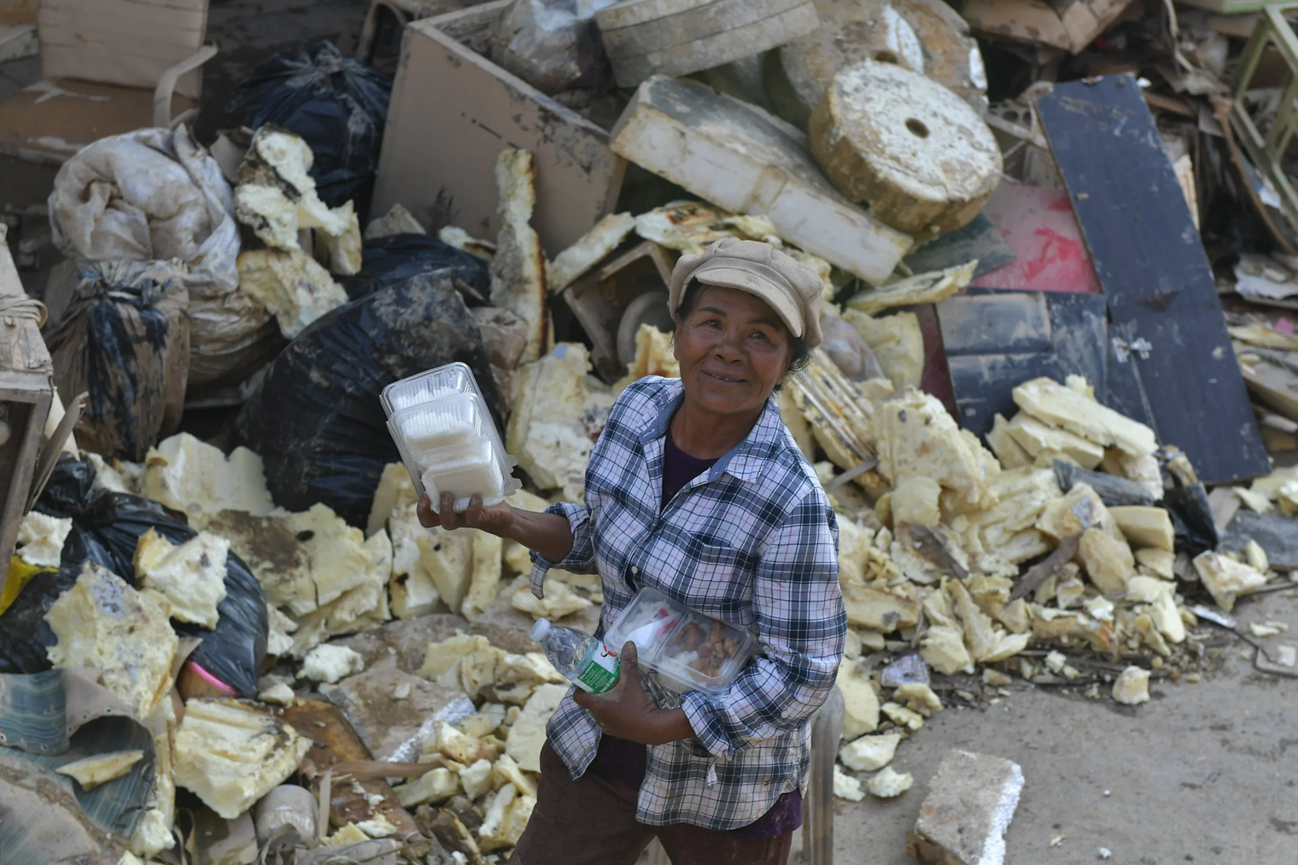 โดยตลอดเส้นทางรถยกสูงของนายกฯได้จอดเพื่อแจกอาหารและน้ำดื่มประชาชนตลอดทาง โดยช่วงหนึ่งได้มีชาวบ้านที่บ้านหลังหนึ่ง ตะโกนว่า “นายกฯมาไม่ต้องกินข้าวแล้วอิ่มแล้ว“