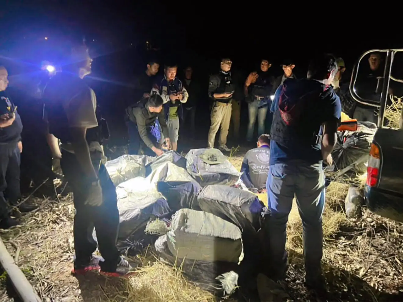 ​จากการตรวจค้นในที่เกิดเหตุและท้ายรถยนต์กระบะคันดังกล่าว พบยาเสพติดจำนวนมหาศาลซุกซ่อนอยู่ในกระสอบรวม 20 กระสอบ ประกอบด้วย ยาเสพติดให้โทษประเภท 1 (ไอซ์ หรือ เมทแอมเฟตามีน) รวม 11 กระสอบ น้ำหนักรวมประมาณ 320 กิโลกรัม และ ยาเสพติดให้โทษประเภท 1 (ยาบ้า หรือ เมทแอมเฟตามีน) รวม 9 กระสอบ จำนวนประมาณ 1,898,000 เม็ด ของกลางที่ตรวจยึดได้รวมถึงรถยนต์กระบะยี่ห้อมาสด้า สีเขียว ทะเบียน เชียงราย ที่ใช้ลำเลียง และโทรศัพท์มือถือของผู้ต้องหา 1 เครื่อง