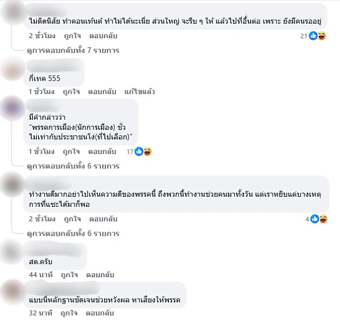 ทั้งนี้ได้มีชาวเน็ตเข้ามาแสดงความคิดเห็นเป็นจำนวนมาก อาทิ ไม่ติดนิสัย ทำคอนเทนต์ ทำไม่ได้นะเนี่ย ส่วนใหญ่จะรีบๆ ให้ แล้วไปที่อื่นต่อ เพราะยังมีคนรออยู่ , กี่เทค 555 , แบบนี้หลักฐานชัดเจนช่วยหวังผล หาเสียงให้พรรค , แบบนี้แปลว่า มันไม่ได้ตั้งใจไปช่วยคนโดนน้ำท่วมหรอก มันตั้งใจจะไปหาเสียงแค่นั้นเอง , มัวแต่พูดใหม่ๆ ไม่ต้องแดกกันพอดี , ยังไม่เลือกตั้ง ก็หาเสียง ตั้งใจช่วยจริง? , ตุ๊ย ยังจะเอาบุญคุณ เป็นต้น