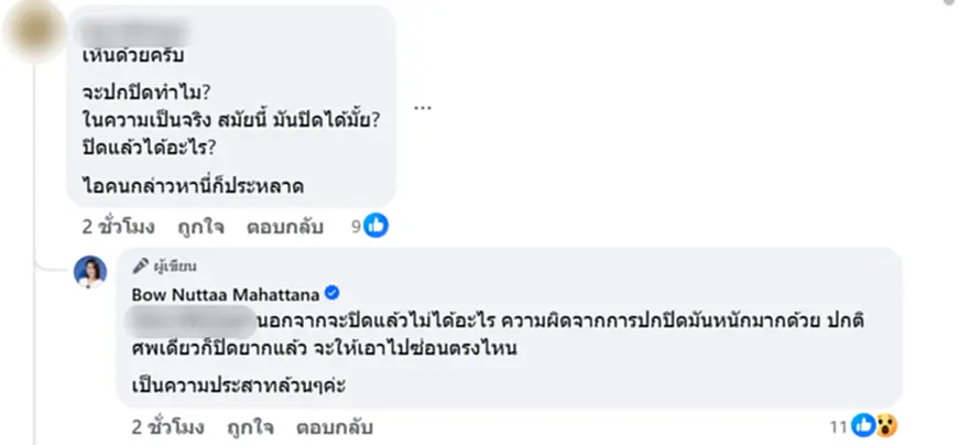 เมื่อวันที่ 1 ธันวาคม 2568 – “โบว์” ณัฏฐา มหัทธนา พิธีกรวิเคราะห์ข่าว และนักกิจกรรมเคลื่อนไหวทางสังคมการเมือง โพสต์เฟซบุ๊กส่วนตัว Bow Nuttaa Mahattana ถึงกรณีมีการกล่าวหาว่ารัฐบาลพยายามจะปกปิดตัวเลขผู้เสียชีวิตจริงในเหตุการณ์น้ำท่วมภาคใต้ โดยเฉพาะพื้นที่หาดใหญ่ว่า “ในบรรดาข้อกล่าวหาทั้งหลายที่เกิดจากอคติ ความคิดวิตกจริตว่ามีคนอยากจะปกปิดบิดเบือนตัวเลขคนตายนี่ “ประสาท” สุดละ”