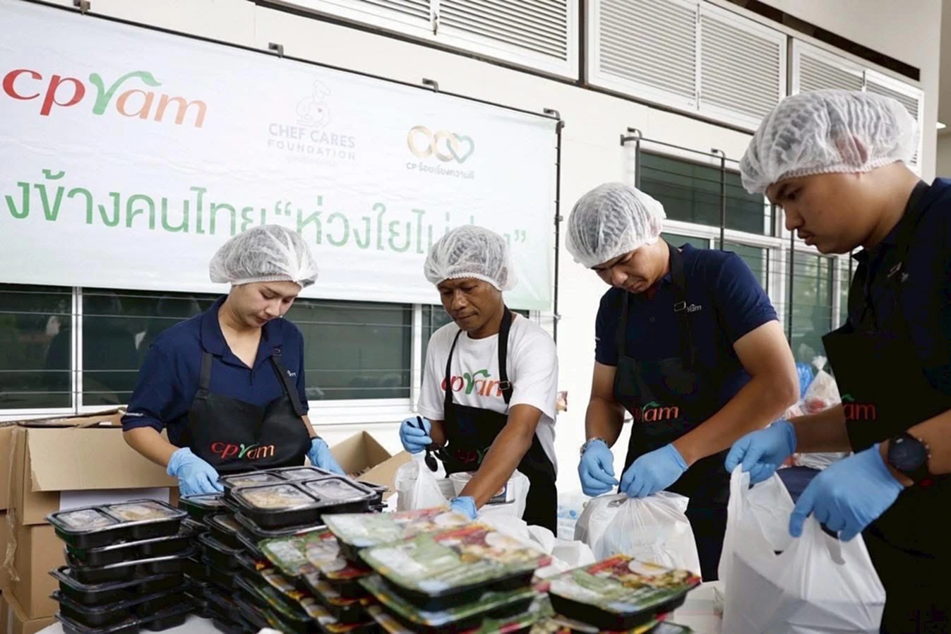 เครือซีพี–ซีพีอาสา ยังได้เร่งสนับสนุนวัตถุดิบต่อเนื่องให้โรงครัวต่าง ๆ เพื่อปรุงเป็นอาหารแจกจ่ายชุมชนที่ยังไม่สามารถเข้าถึงตลาดหรือเสบียงอาหาร ได้แก่ โรงครัวพระราชทาน – มูลนิธิราชประชานุเคราะห์ จ.พัทลุง ผลิตอาหาร วันละ 3,000 กล่อง พร้อมน้ำดื่ม เพื่อช่วยชาวหาดใหญ่สนับสนุนเนื้อเป็ดสำหรับโรงครัวย่อย 8 จุด ได้แก่ โรงครัว อ.หาดใหญ่ (วัดโคกนาว) โรงครัว ต.ฉลุง จ.สตูล โรงครัวกองพัฒนานักศึกษา มทร.ศรีวิชัย โรงครัวกองทัพไทย โรงครัวกองทัพอากาศ และยังสนับสนุนมูลนิธิกระจกเงาที่ตั้งโรงครัววัดน้อยนอก อ.หาดใหญ่ จ.สงขลา ส่งผลิตภัณฑ์เพื่อประกอบอาการวันละ 2,000 กล่องอีกด้วย นอกจากนี้ ในส่วนของซีพีเอฟยังสนับสนุนไข่สมุนไพร/ไข่ต้มปอกเปลือก 100,000 ฟอง ให้กระทรวงเกษตรนำไปแจกประชาชนในหลายพื้นที่