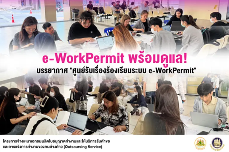โดยกรมการจัดหางาน และ Outsourcing Service มุ่งมั่นในการให้บริการ ให้คำปรึกษา และอำนวยความสะดวก แก่ผู้ใช้บริการระบบ e-WorkPermit ในการขึ้นทะเบียนแรงงานต่างด้าว อย่างเต็มที่