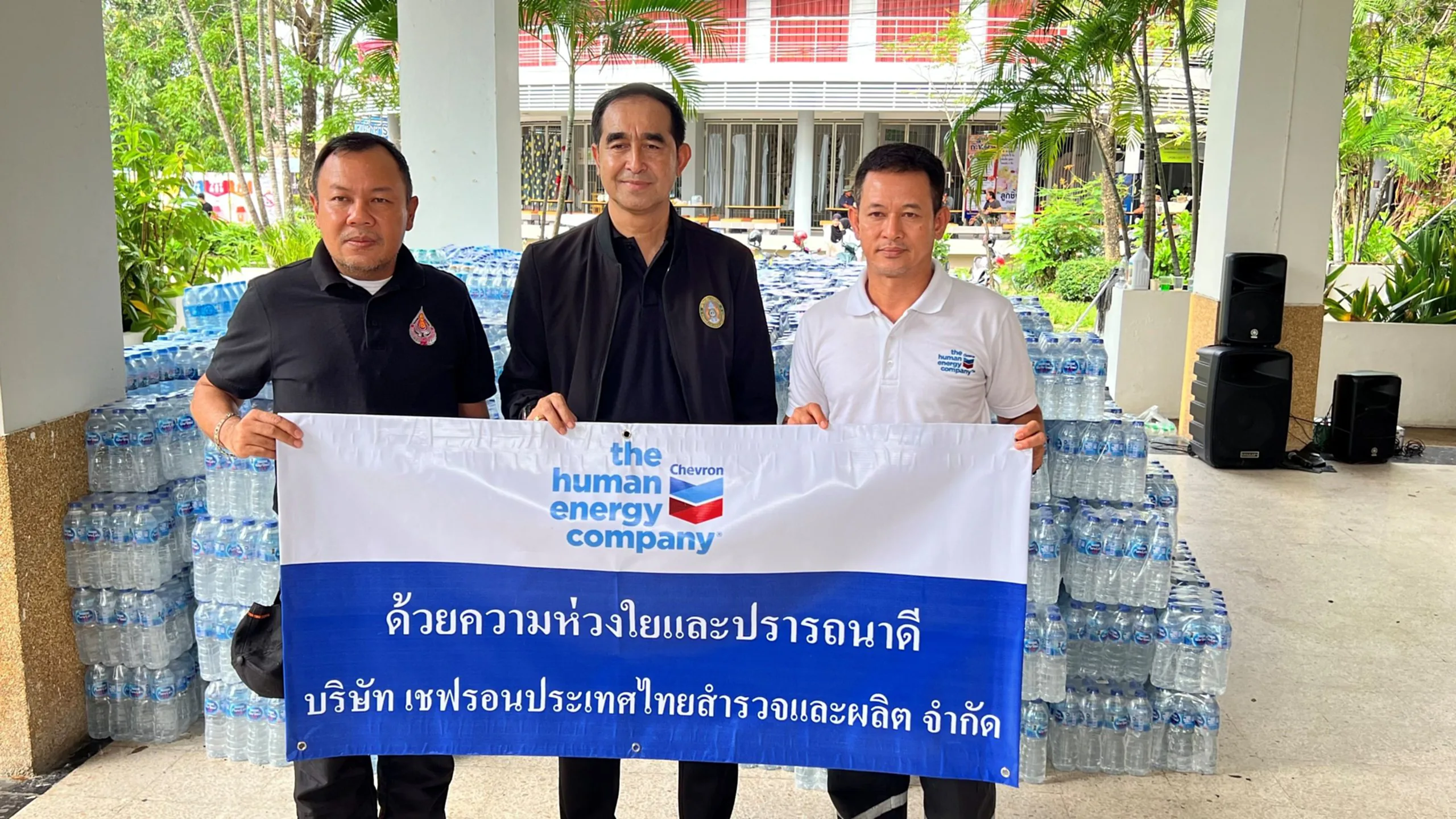 วันที่ 1 พ.ย. 2568 บริษัท เชฟรอนประเทศไทยสำรวจและผลิต จำกัด ส่งมอบน้ำดื่มจำนวน 33,600 ขวด แก่ศูนย์พักพิง 2 แห่ง ในจังหวัดสงขลา ได้แก่ ศูนย์พักพิงโรงพยาบาลสงขลานครินทร์และศูนย์พักพิงมหาวิทยาลัยราชภัฎสงขลา เพื่อนำไปช่วยเหลือผู้ประสบภัยและผู้ที่ได้รับผลกระทบจากอุทกภัยในจังหวัดสงขลา
