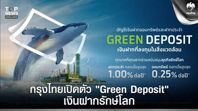 ล่าสุด ธนาคารกรุงไทย ก้าวสู่การเป็นผู้นำด้านการเงินเพื่อสิ่งแวดล้อม เปิดตัวผลิตภัณฑ์ใหม่ “Green Deposit” บัญชีเงินฝากที่นำเงินทุกบาทไปต่อยอดสนับสนุนธุรกิจรักษ์โลกอย่างแท้จริง ภายใต้แนวคิด