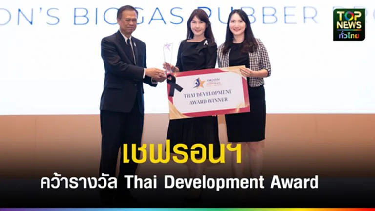 รางวัล “Thai Development Award” เป็นหนึ่งในสามรางวัลพิเศษที่มอบให้แก่องค์กรที่จัดทำโครงการที่สร้างผลกระทบเชิงบวกต่อสังคม ซึ่งเชฟรอนได้รับรางวัลนี้ จากโครงการ “ก๊าซชีวภาพสหกรณ์ยางพาราสู่สังคมคาร์บอนต่ำ” ที่เป็นความร่วมมือกับสถาบันวิจัยระบบพลังงาน (PERIN) มหาวิทยาลัยสงขลานครินทร์ ในการมอบความรู้ให้กับชุมชน นำระบบก๊าซชีวภาพ ระบบพลังงานแสงอาทิตย์ และโมเดล Zero Waste มาใช้ในกระบวนการรมควันยางแผ่น เพื่อเปลี่ยนน้ำเสียเป็นก๊าซชีวภาพและนำมารมควันจนได้ ‘ยางแผ่นรมควันคาร์บอนต่ำ’ เป็นผลสำเร็จ และสามารถแก้ปัญหาสิ่งแวดล้อม เช่น กลิ่นเหม็นและน้ำเสียจากการผลิตยางรมควันแบบดั้งเดิมของกลุ่มเกษตรกรชาวสวนยาง ในส่วนของรางวัลองค์กรที่มีความรับผิดชอบต่อสังคมดีเด่น (AMCHAM Corporate Social Impact Awards) นั้น จัดขึ้นเป็นประจำทุกปี เพื่อยกย่องบริษัทสมาชิกหอการค้าอเมริกันในประเทศไทยที่เป็นแบบอย่างในการดำเนินธุรกิจควบคู่กับการทำกิจกรรมเพื่อสังคม โดยบริษัท เชฟรอนประเทศไทยสำรวจและผลิต จำกัด ได้รับรางวัลองค์กรที่มีความรับผิดชอบต่อสังคมดีเด่นประจำปี 2568(AMCHAM Corporate Social Impact Award) ในระดับแพลตินัม ติดต่อกันเป็นปีที่ 16 จากการดำเนินงานด้านการส่งเสริมสังคมมาอย่างต่อเนื่อง ภายใต้กรอบกลยุทธ์ ESG หรือ การอนุรักษ์สิ่งแวดล้อม (Environment) การทำประโยชน์เพื่อสังคม (Social) และการดำเนินธุรกิจอย่างโปร่งใสและเป็นธรรม (Governance)