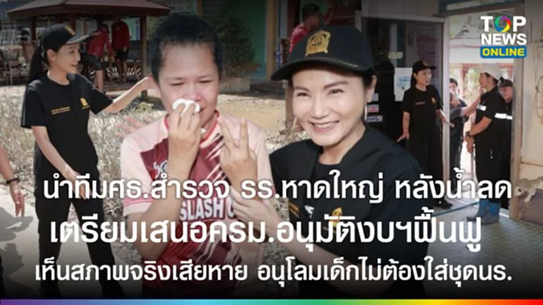 “นฤมล” นำทีมศธ.สำรวจความเสียหาย โรงเรียนหาดใหญ่ เตรียมเสนอครม.อนุมัติงบฯฟื้นฟู บรรเทาเดือดร้อน เห็นสภาพจริงความสียหาย อนุโลมเด็กไม่ต้องใส่ชุดนักเรียน