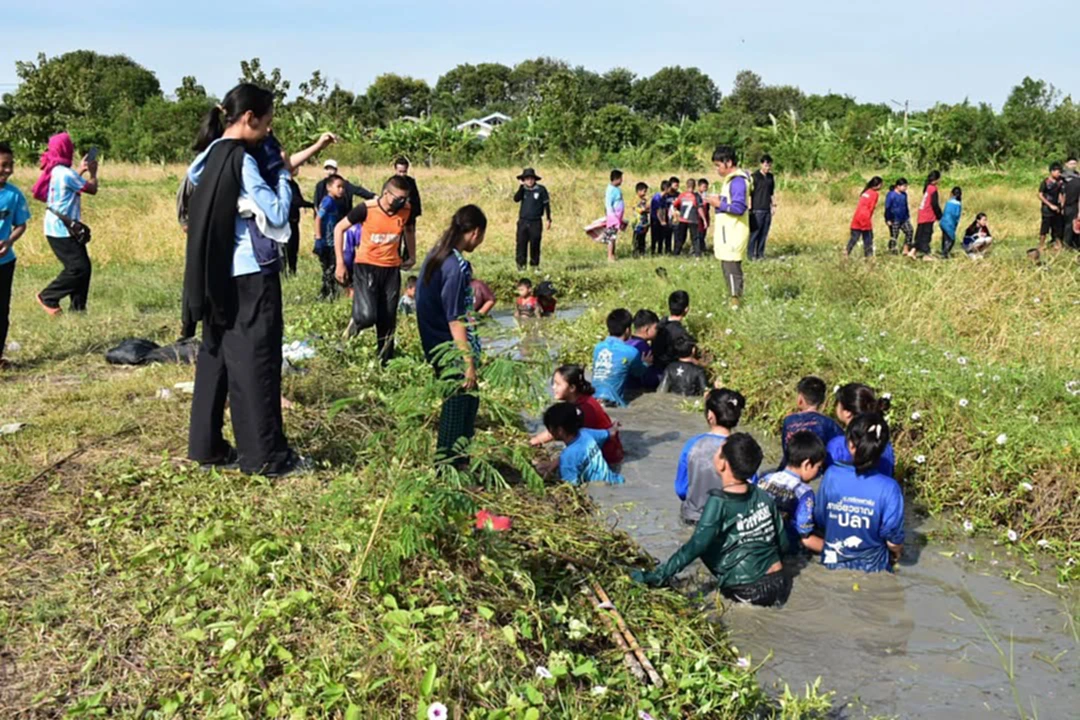 นอกจากนักเรียนจะได้เกี่ยวข้าวแล้ว ยังเรียนรู้ผ่าน 7 ฐานการเรียนรู้ ตั้งแต่การฟาดข้าว สีข้าว ฝัดข้าวแปรรูปเป็นข้าวกล้องและโจ๊ก ไปจนถึงการเรียนรู้เกษตรผสมผสานและการฟื้นฟูดินด้วยปอเทือง