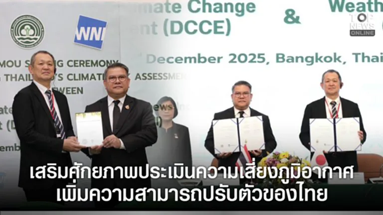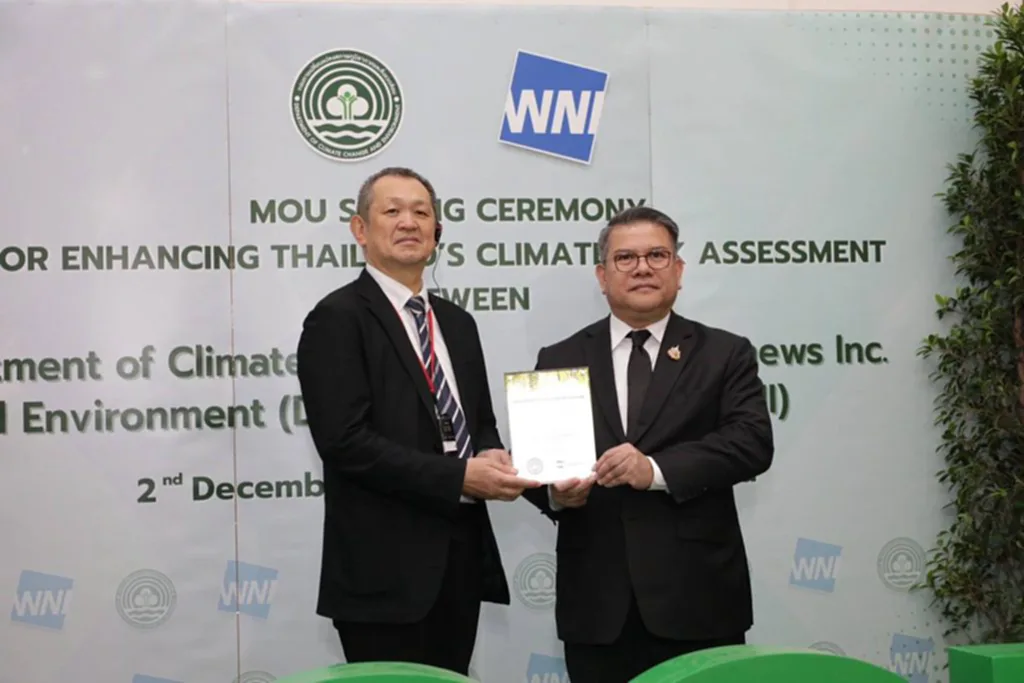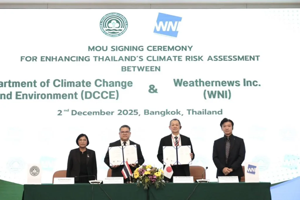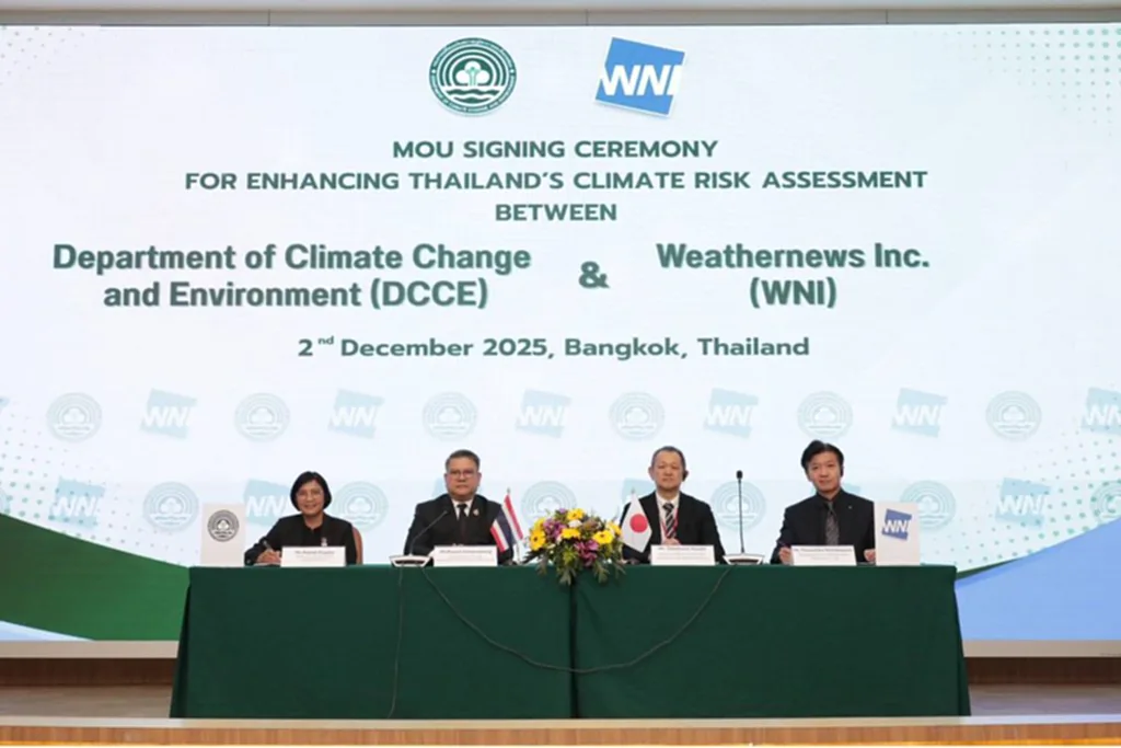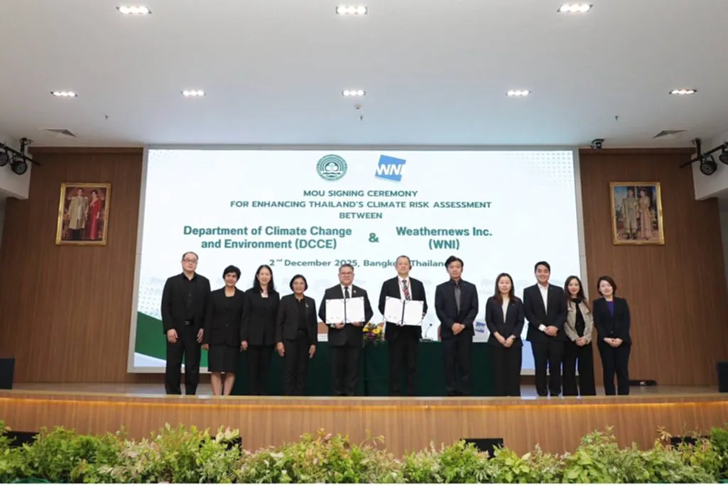 วันที่ 2 ธันวาคม 2568 กระทรวงทรัพยากรธรรมชาติและสิ่งแวดล้อม โดยกรมการเปลี่ยนแปลงสภาพภูมิอากาศและสิ่งแวดล้อม (สส.) ได้ลงนามบันทึกความร่วมมือว่าด้วยการเสริมสร้างศักยภาพการประเมินความเสี่ยงจากการเปลี่ยนแปลงสภาพภูมิอากาศของประเทศไทย ระหว่าง กรมการเปลี่ยนแปลงสภาพภูมิอากาศและสิ่งแวดล้อม โดย นายปวิช เกศววงศ์ รองอธิบดีกรมการเปลี่ยนแปลงสภาพภูมิอากาศและสิ่งแวดล้อม ได้รับมอบหมายจาก ดร. พิรุณ สัยยะสิทธิ์พานิช อธิบดีกรมการเปลี่ยนแปลงสภาพภูมิอากาศและสิ่งแวดล้อม และ บริษัท เวเธอร์นิวส์ จำกัด โดยนายทาคามุเนะ ซูซุกิ ประธานเจ้าหน้าที่บริหารฝ่ายธุรกิจเทคโนโลยีสภาพภูมิอากาศ บริษัท เวเธอร์นิวส์ จำกัด และนายมาซาจิกะ นิชิบายาชิ ประธานกรรมการบริษัท เวเธอร์นิวส์ (ประเทศไทย) จำกัด เป็นสักขีพยาน และได้รับเกียรติจากนางสาวยูริเอะ โอซาวะ เลขานุการเอกสถานเอกอัครราชทูตญี่ปุ่นประจำประเทศไทย ร่วมกล่าวแสดงความยินดี ณ ห้องประชุมอารีย์สัมพันธ์ อาคารกรมการเปลี่ยนแปลงสภาพภูมิอากาศและสิ่งแวดล้อม