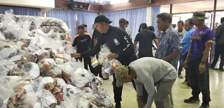 ทางเจ้าหน้าที่เทศบาลเมืองปากพนัง ได้ร่วมกันขนถุงยังชีพทั้งหมด และให้ประธานชุมชน 22 ชุมชน เขตเทศบาลเมืองปากพนัง และเจ้าหน้าที่ อสม.ดำเนินการแจกจ่ายให้กับชาวบ้านในแต่ละเขต