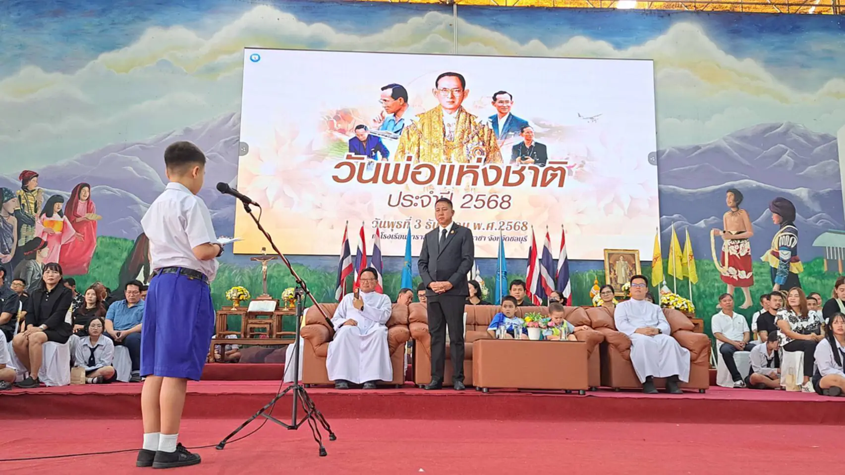 วันที่ 3 ธันวาคม 2568 เวลา 08.30 น. ที่ศาลารวมใจ โรงเรียนดาราสมุทร อ.ศรีราชา จ.ชลบุรี นายธวัชชัย ศรีทอง นายกสมาคมผู้ปกครองและครูโรงเรียนดาราสมุทร เป็นประธานในกิจกรรมวันพ่อแห่งชาติ ประจำปีการศึกษา2568 พร้อมด้วยบาทหลวง ดร.ลือชัย จันทร์โป๊ ผู้ลงนามแทนผู้รับใบอนุญาต/ผู้อำนวยการโรงเรียนดาราสมุทร ,บาทหลวงอนุสรณ์ พงศ์ศิริพัฒน์ รองประธานกรรมการบริหาร ,ผู้ปกครอง และนักเรียนร่วมพิธีเปิด โดยก่อนเริ่มกิจกรรม ได้มีพิธีถวายความอาลัย สำนึกในพระมหากรุณาธิคุณของ สมเด็จพระนางเจ้าสิริกิติ์ พระบรมราชินีนาถ พระบรมราชชนนีพันปีหลวง และยืนสงบนิ่งเป็นเวลา 1 นาที