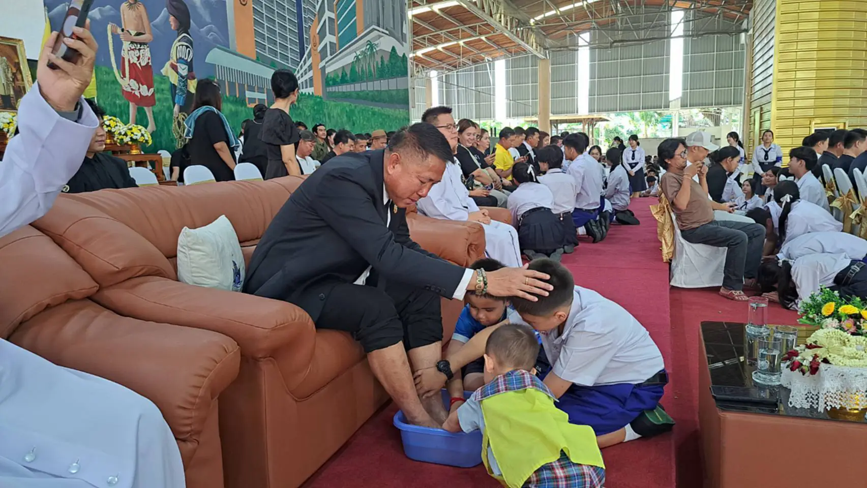 โดยมี ตัวแทนนักเรียน เด็กชายภาคภูมิ ศรีทอง นักเรียนชั้นประถมศึกษาปีที่ 5/3 กล่าวถึงพระคุณพ่อ ลูกทุกคนร่วมกิจกรรมล้างเท้าพ่อ มอบของขวัญแก่พ่อ และแสดงความรัก ความรู้สึกต่อกัน โดยบรรยากาศเต็มไปด้วยความรัก ความอบอุ่นในครอบครัว
