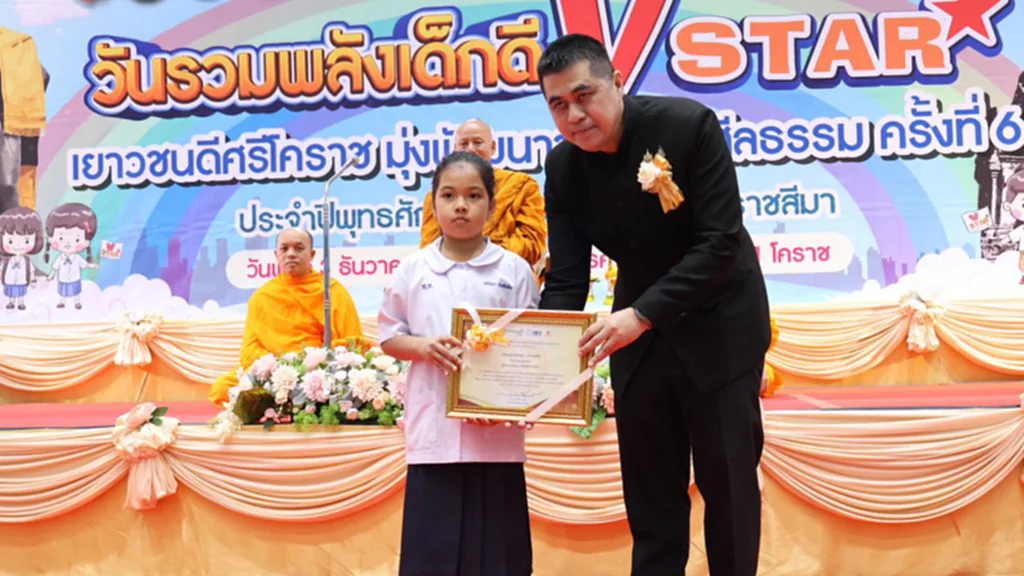 วันนี้ (3 ธ.ค. 2568) เวลา 08.30 น. นายอนุพงศ์ สุขสมนิตย์ ผู้ว่าราชการจังหวัดนครราชสีมา เป็นประธานในพิธีเปิดงานรวมพลังเด็กดี V-Star เยาวชนศรีโคราช มุ่งพัฒนาชาติด้วยศีลธรรม ประจำปีพุทธศักราช 2568 ณ ศูนย์การค้าเทอร์มินอล 21 โคราช โดยมีวัตถุประสงค์เพื่อส่งเสริม และปลูกฝังคุณธรรม จริยธรรม ให้แก่เยาวชนซึ่งเป็นกำลังสำคัญของชาติ ตอบสนองนโยบายของสำนักงานคณะกรรมการการศึกษาขั้นพื้นฐาน และกระทรวงศึกษาธิการ ในการสร้าง ผู้นำเยาวชนต้นแบบด้านศีลธรรม ที่มีทั้งศิลปะ และความดีงาม เพื่อกลับไปช่วยเหลือสังคมได้อย่างยั่งยืน