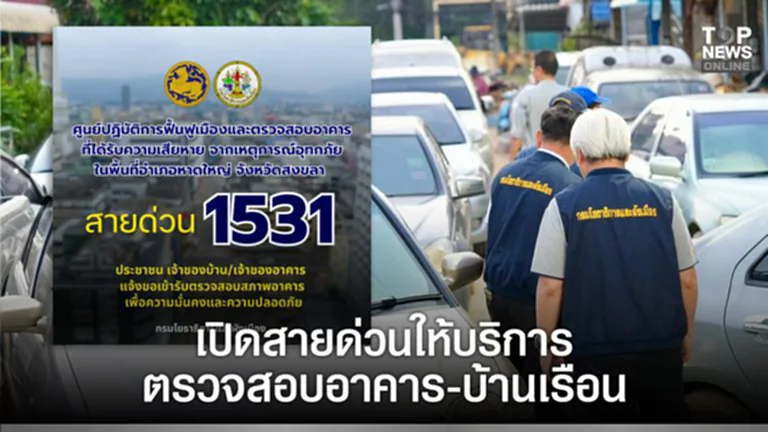 กรมโยธาธิการและผังเมือง โดยศูนย์ปฏิบัติการฟื้นฟูเมืองและตรวจสอบอาคารที่ได้รับความเสียหายจากเหตุการณ์อุทกภัยในพื้นที่ อำเภอหาดใหญ่ จังหวัดสงขลา เปิดสายด่วน 1531 ให้บริการตรวจสอบอาคาร/บ้านเรือน ประชาชน หลังเกิดอุทกภัย