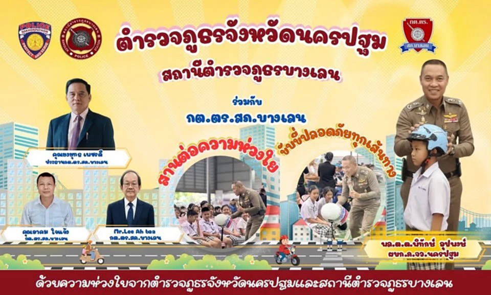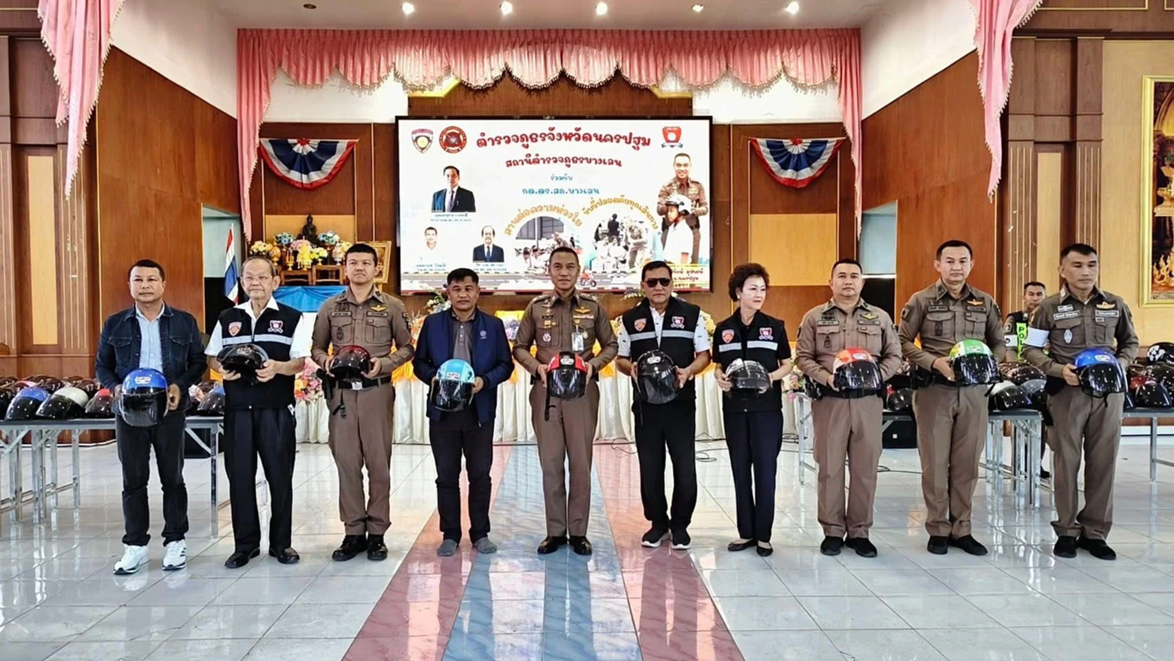 พล.ต.ต.พิทักษ์ อุปพงษ์ ผบก.ภ.จว.นครปฐม นำทีมเปิดโครงการ “ขับขี่ปลอดภัยทุกเส้นทาง” ที่ สภ.บางเลน เน้นปลูกฝังวินัยจราจรให้เยาวชนและประชาชน พร้อมมอบหมวกนิรภัย 325 ใบ แก่นักเรียนและผู้ใช้รถจักรยานยนต์ ลดสูญเสียก่อนเข้าสู่ช่วง 7 วันอันตรายปีใหม่ 2569