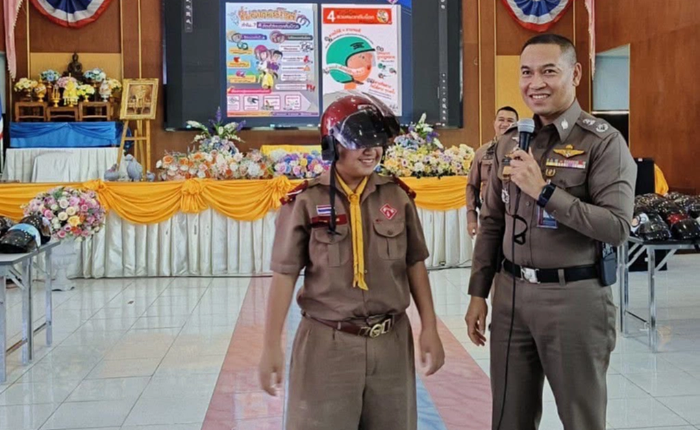 โดยมีกิจกรรมมอบหมวกนิรภัยตามโครงการ “สานต่อความห่วงใย ขับขี่ปลอดภัยทุกเส้นทาง” เน้นการสวมหมวกนิรภัย เพื่อลดความสูญเสียจากอุบัติเหตุจราจรทางบก ให้แก่ประชาชนผู้ใช้เส้นทางในพื้นที่